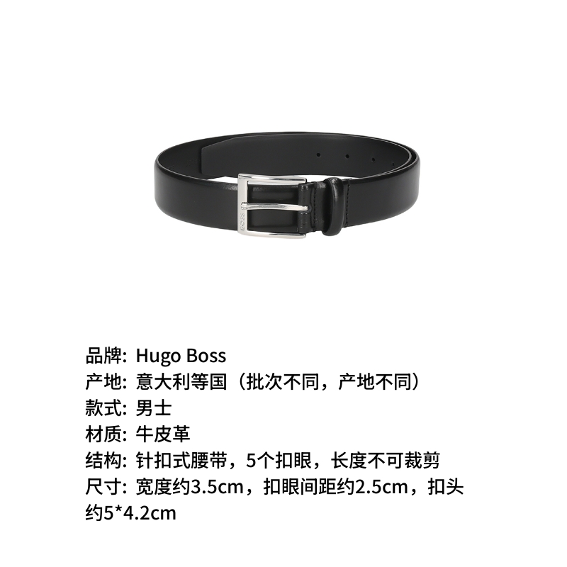 自营Hugo Boss 雨果博斯 25秋冬新品 男士牛皮革黑色不可裁剪皮带腰带3.5cm 50482241 001