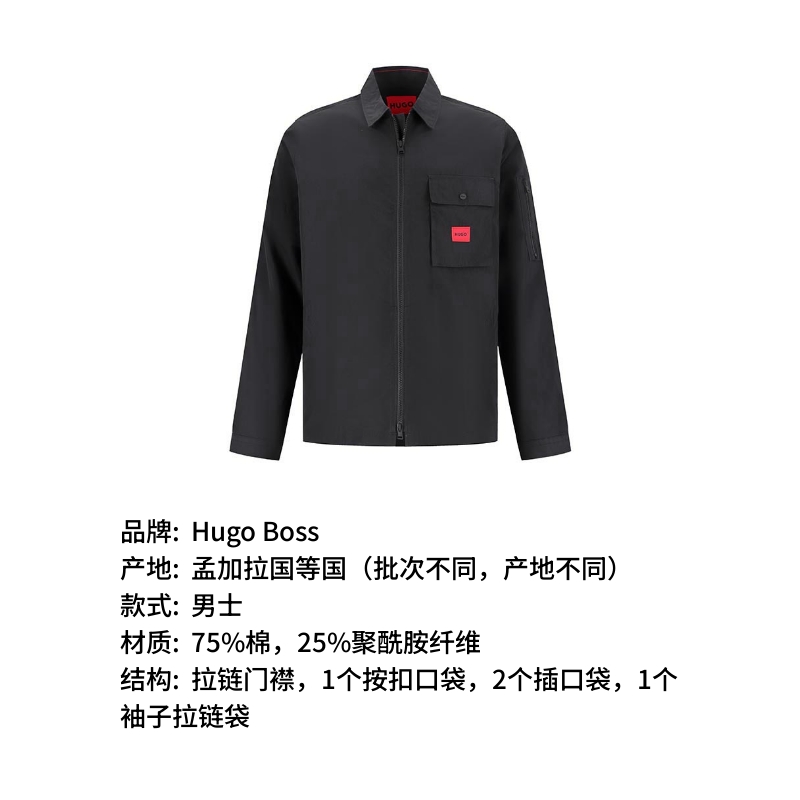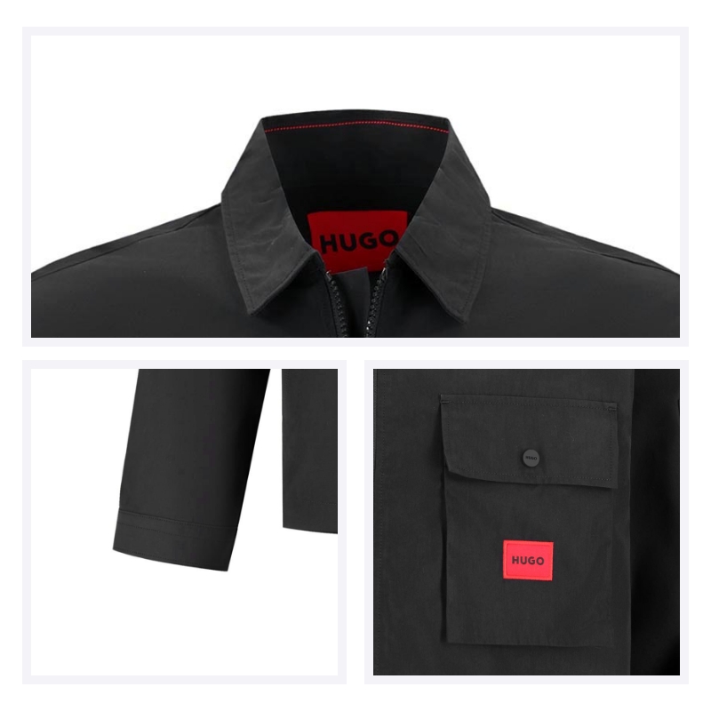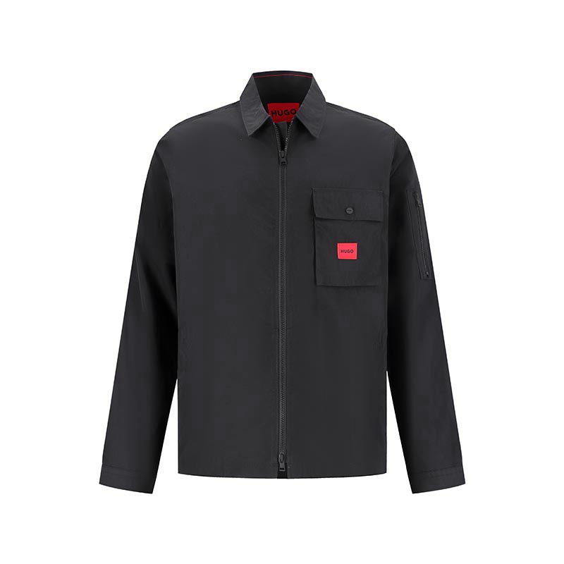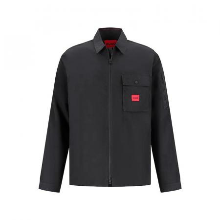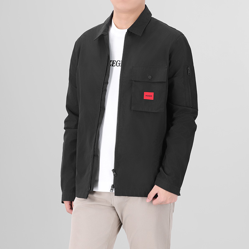 自营Hugo Boss 雨果博斯 25秋冬新品 男士HUGO系列黑色徽标贴片拉链衬衫式休闲外套 50482701 001