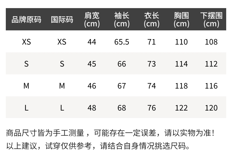 - 温馨提示:1.丢失包装及附件或拆除防损标签/吊牌时不予退换,敬请理解。2.批次不同,产地/细节有所不同,随机发货。3.所有尺寸皆为手工测量,存在1~3cm误差,请以实物为准!