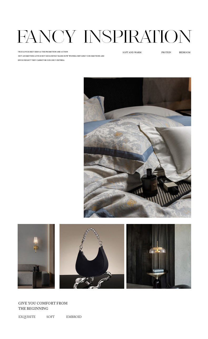 优曼集团(Umanto Group Ltd.)是美国家纺用品企业,营造家居时尚空间,推崇舒适、优雅、品质的生活方式。产品设计风格融合美式风情与东方文化,更把产品带给全球顾客。优曼集团旗下有Umanto、Vena Rosa、Fantti、Vena Rosa Kids四个子品牌。Fantti芬缇将新古典主义和浪漫主义融为一体,沿袭欧洲皇室和美国新贵的尊贵奢华风范,并注入现代生活的时尚元素,为追求生活品质和奢华享受的金领一族提供居家生活的极致感受。