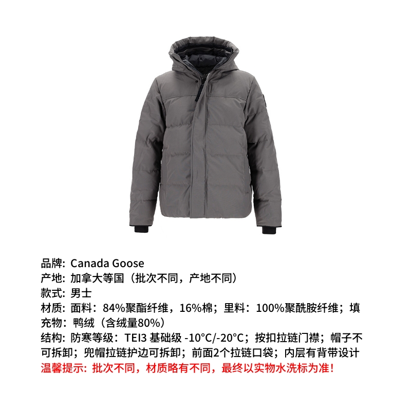 自营Canada Goose 加拿大鹅 新品 男士海岸灰色徽标刺绣MacMillan黑标派克大衣鸭绒羽绒服上衣外套 2080MB 811