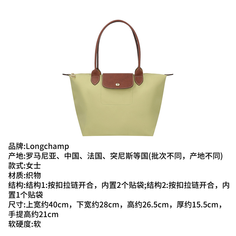 自营Longchamp 珑骧 26春夏新品 女包 女士Le Pliage Original系列织物开心果绿中号长柄可折叠饺子包托特包购物袋手提单肩包 2605 089 244