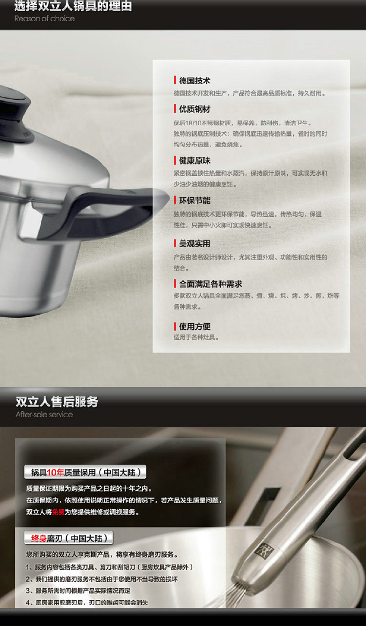 公元1731年6月13日,时值西历双子星座,Peter·Henckels(彼得·亨克斯先生)以双子座作为最初的构想,在德国美丽的莱茵河畔小镇索林根创立了双立人品牌。同时也揭开了这一人类现存最古老商标之一不老传说的序幕。他的后代约翰·阿布雷汉姆·亨克斯将公司名称改成Zwilling J.A.Henckels。如今,双立人拥有超过2000种的不锈钢刀剪餐具、锅具、厨房炊具和个人护理用品,使您在生活的每个角落感受到双立人赋予生活的品质与美感,使得双立人世世代代的使用者在心理上越来越认同品牌所创造出的价值感。双立人公司一直秉承着用创新科技制作高品质产品,并且为顾客提供优质的服务。德国双立人勇敢摆脱成功刀具公司、成功不锈钢锅具公司的自我记载,向自己构造的摩登厨房迈进,创造快乐厨房体验。