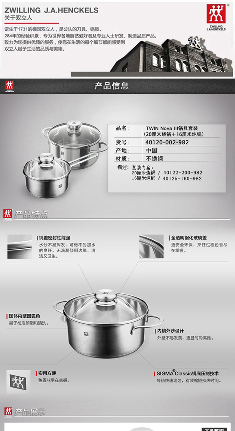 Zwilling 双立人TWIN NOVA III锅具两件套(20cm烧锅+16cm炖锅)