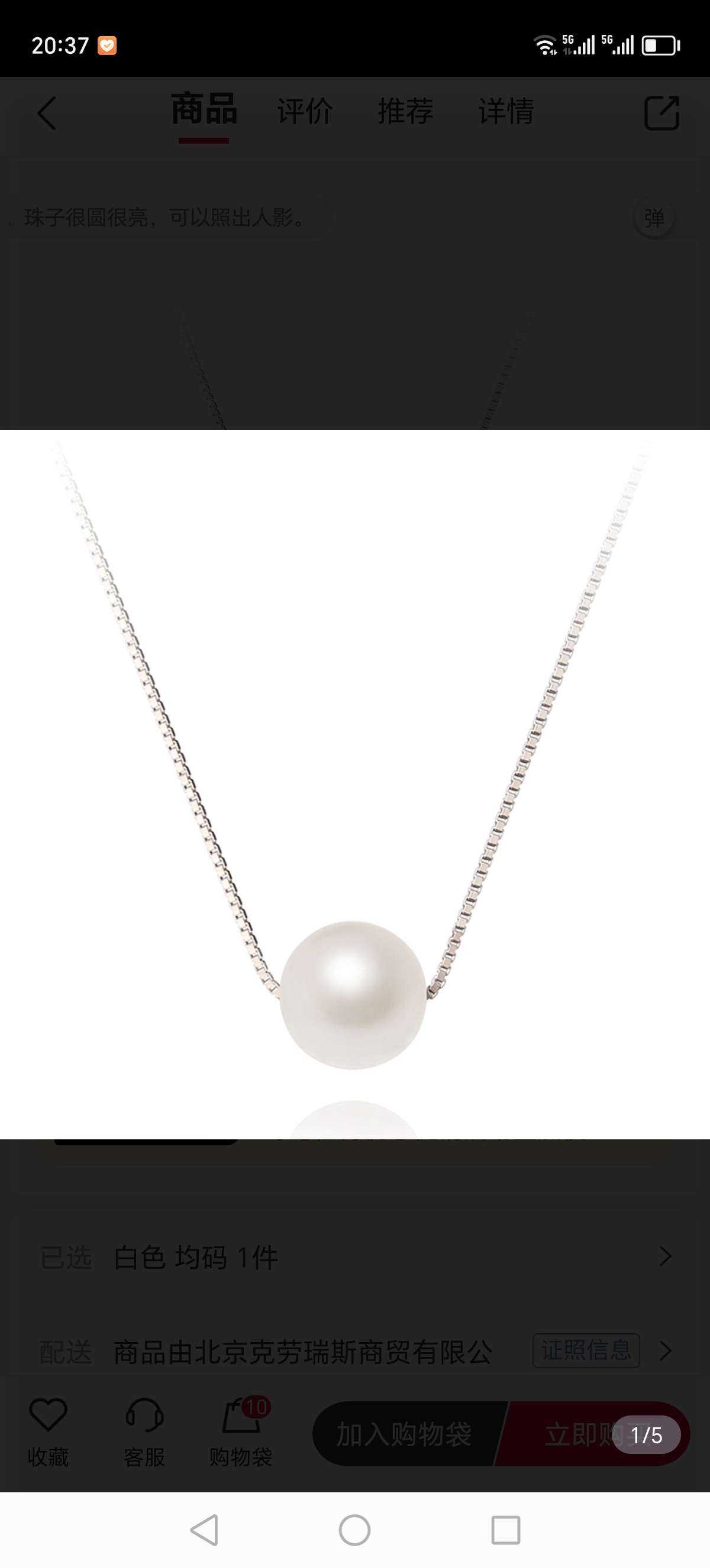 项链款式时尚新潮,珍珠色泽度很好,简单大气,非常显气质。配裙子,衬衫都好看。适合各个年龄阶段的人佩戴,已经推荐给朋友,大爱!