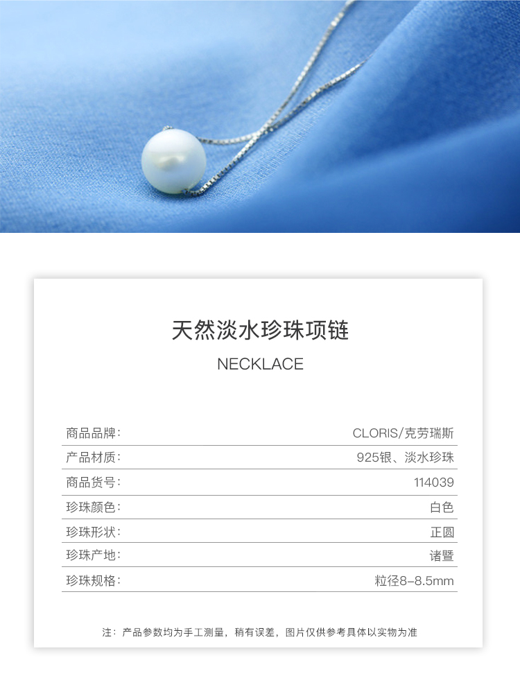 CLORIS 【热销礼物】克劳瑞斯 白色穿心莲淡水珍珠项链 925银 8-8.5mm
