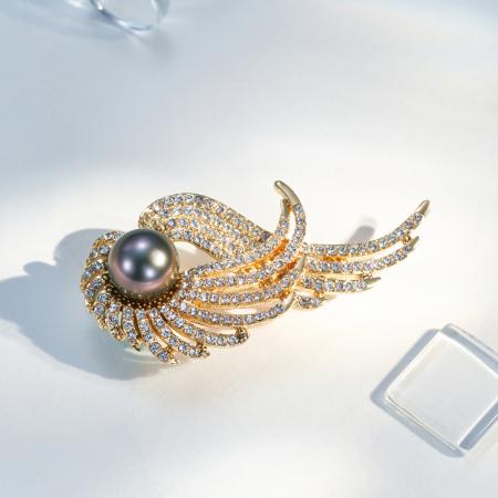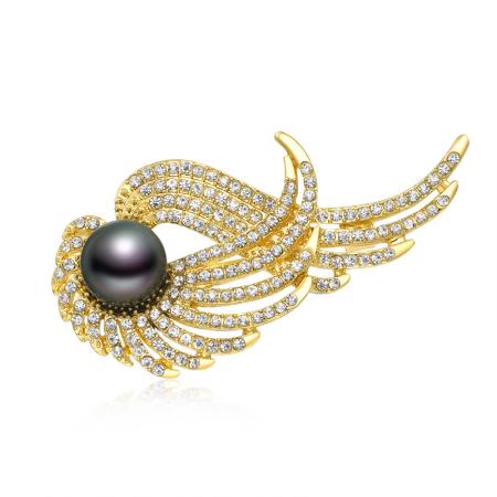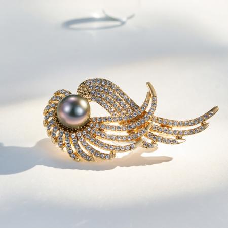 CLORIS 【热销礼物】克劳瑞斯 大溪地黑珍珠凤凰展翅胸针 经典时尚 潮流穿搭首饰 女款 礼物 8.5-9.5mm