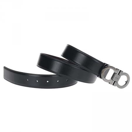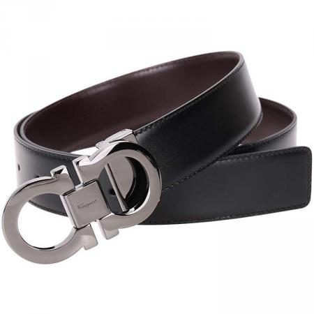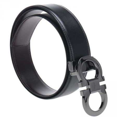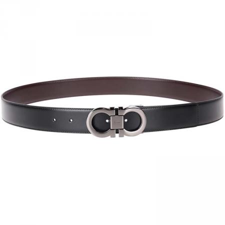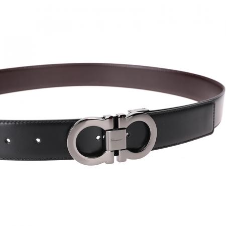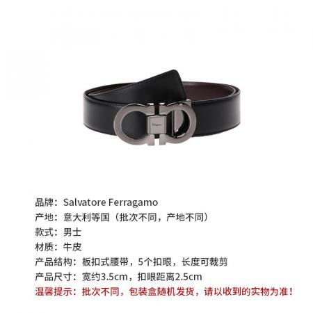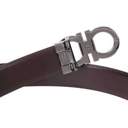 自营Ferragamo 菲拉格慕男士黑色赤褐色光面牛皮板扣可裁剪3.5cm双面皮带腰带 679535 0644557