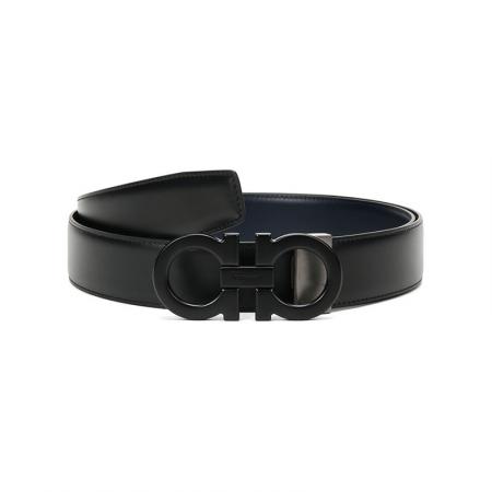 自营Ferragamo 菲拉格慕 男士黑色/深蓝色牛皮板扣双面皮带腰带 679710 0688772