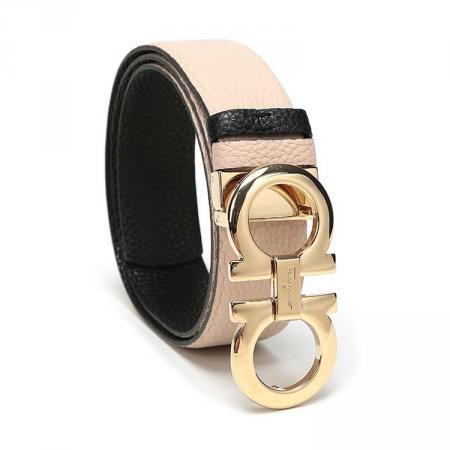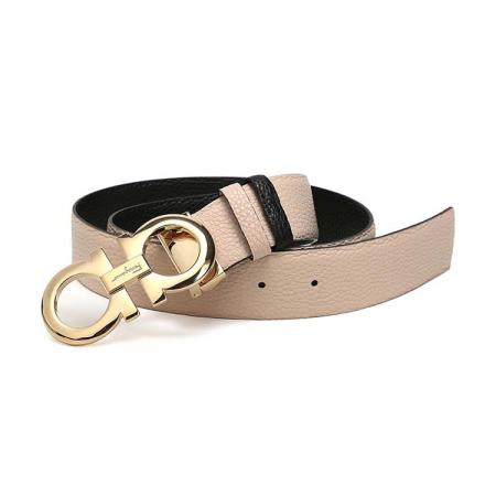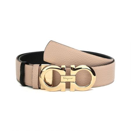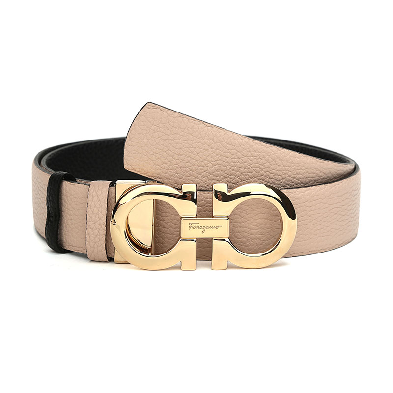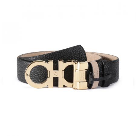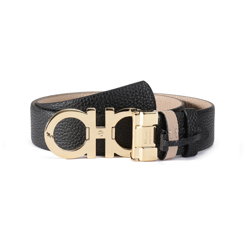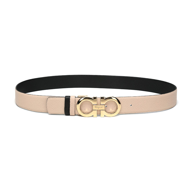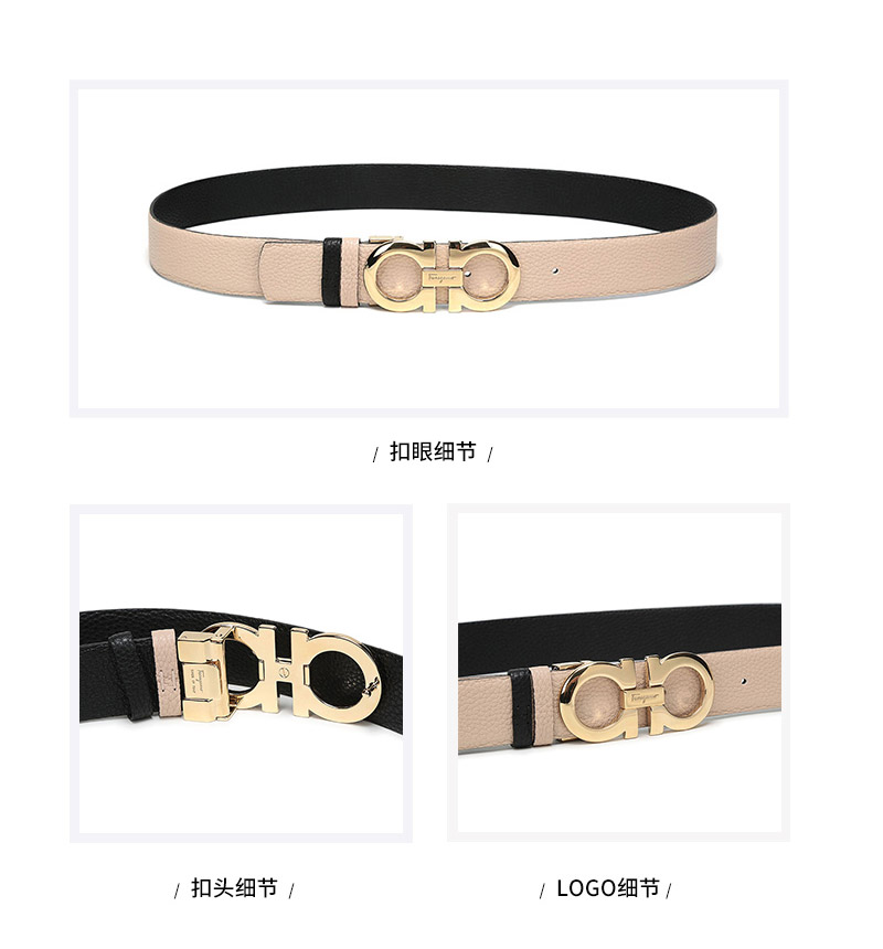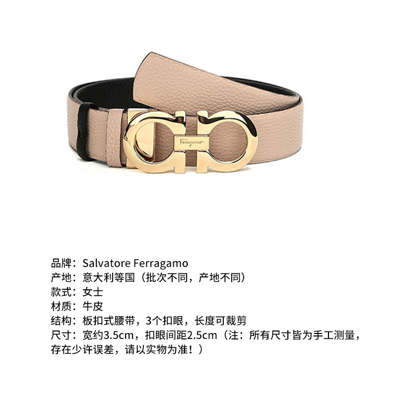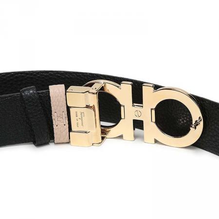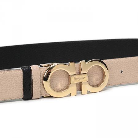 自营Ferragamo 菲拉格慕女士米色黑色牛皮板扣式双面皮带腰带3个扣眼可裁剪3.5cm 23A564 0615201