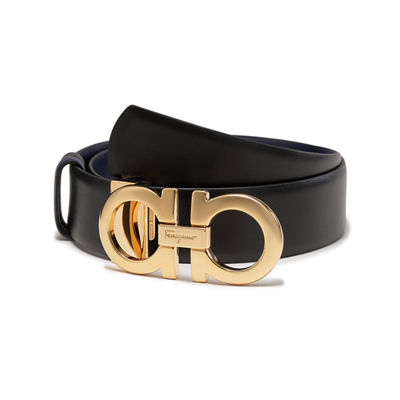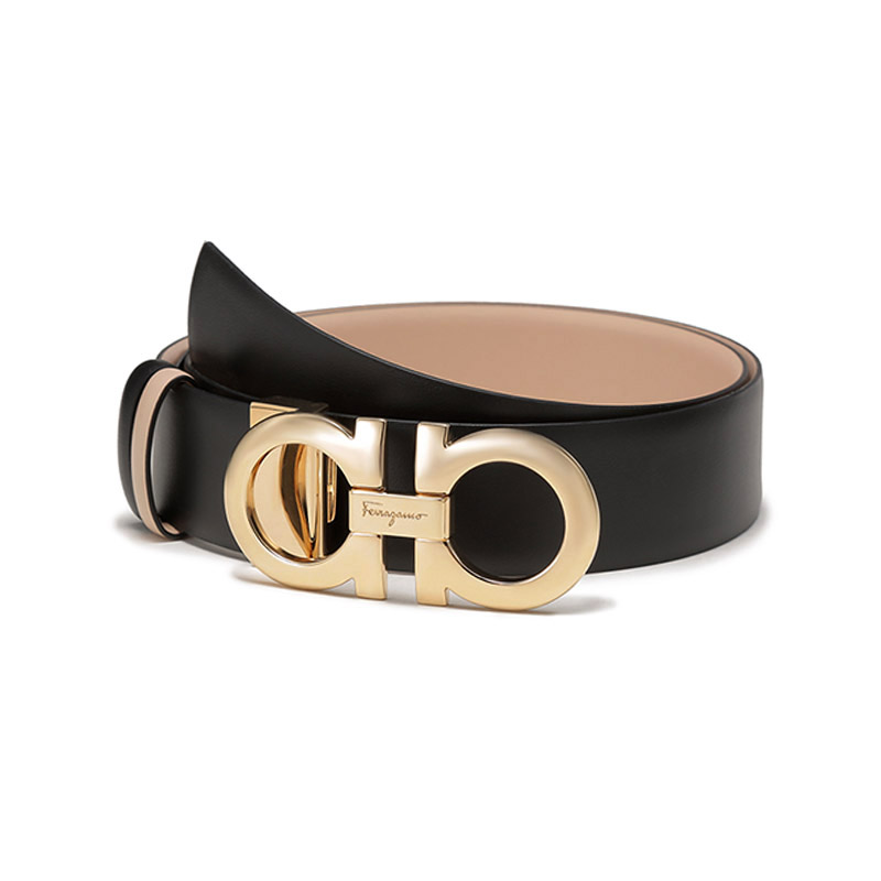 自营Ferragamo 菲拉格慕 女士米色黑色牛皮板扣式双面皮带腰带3个扣眼可裁剪3.5cm 23A564 0615201