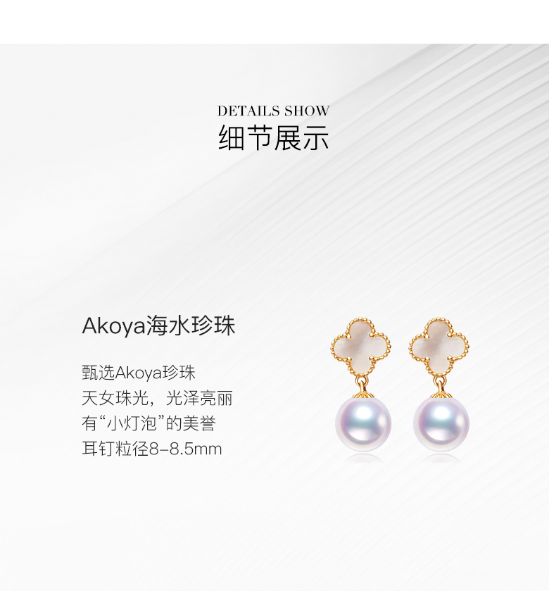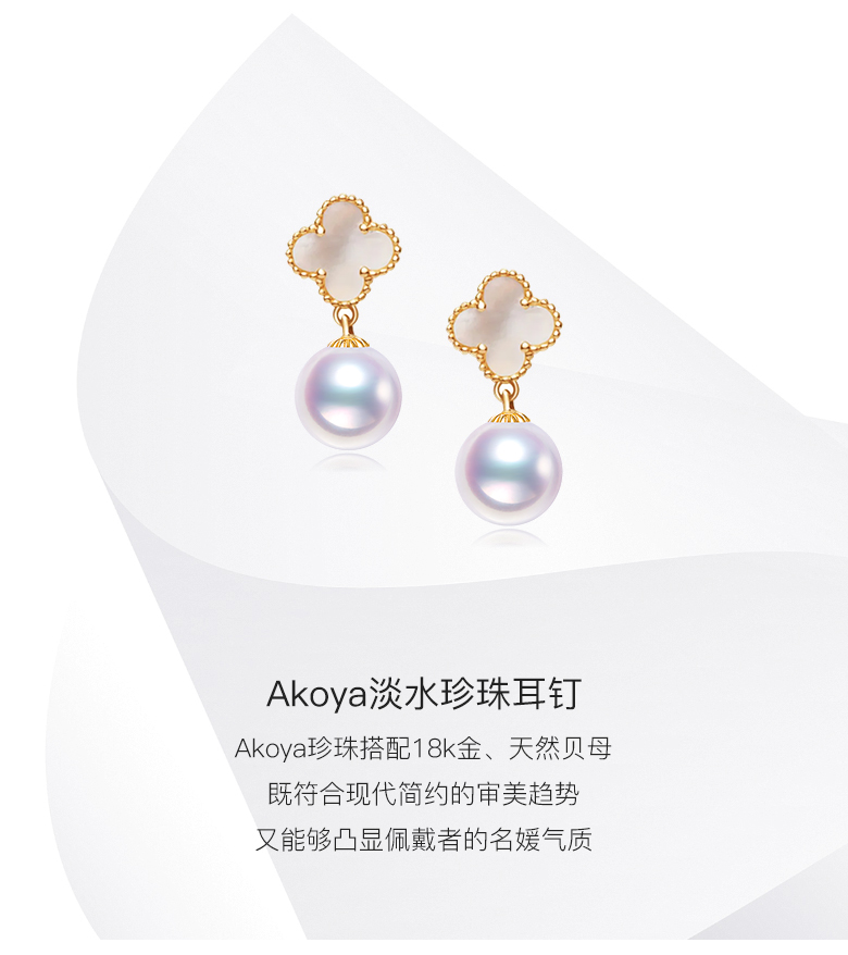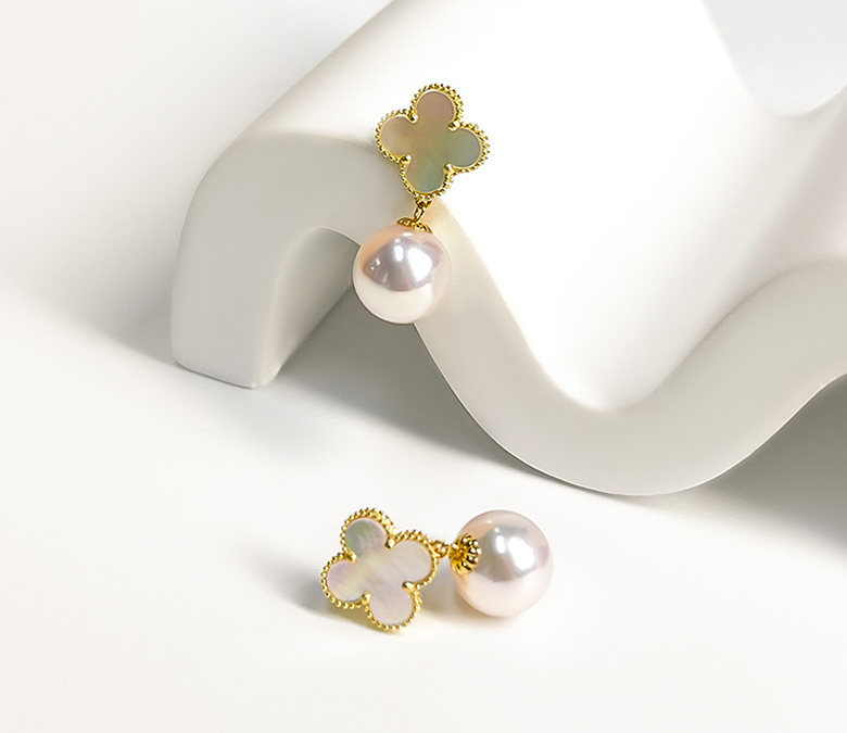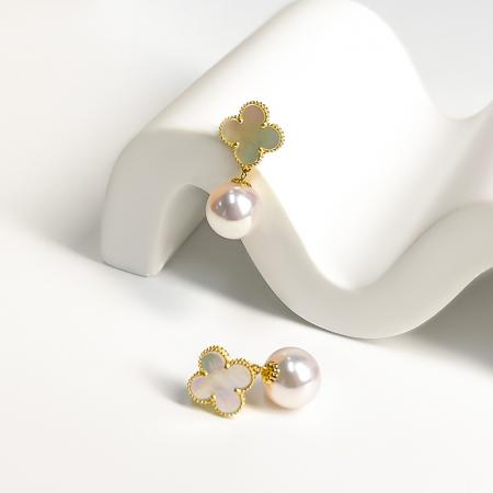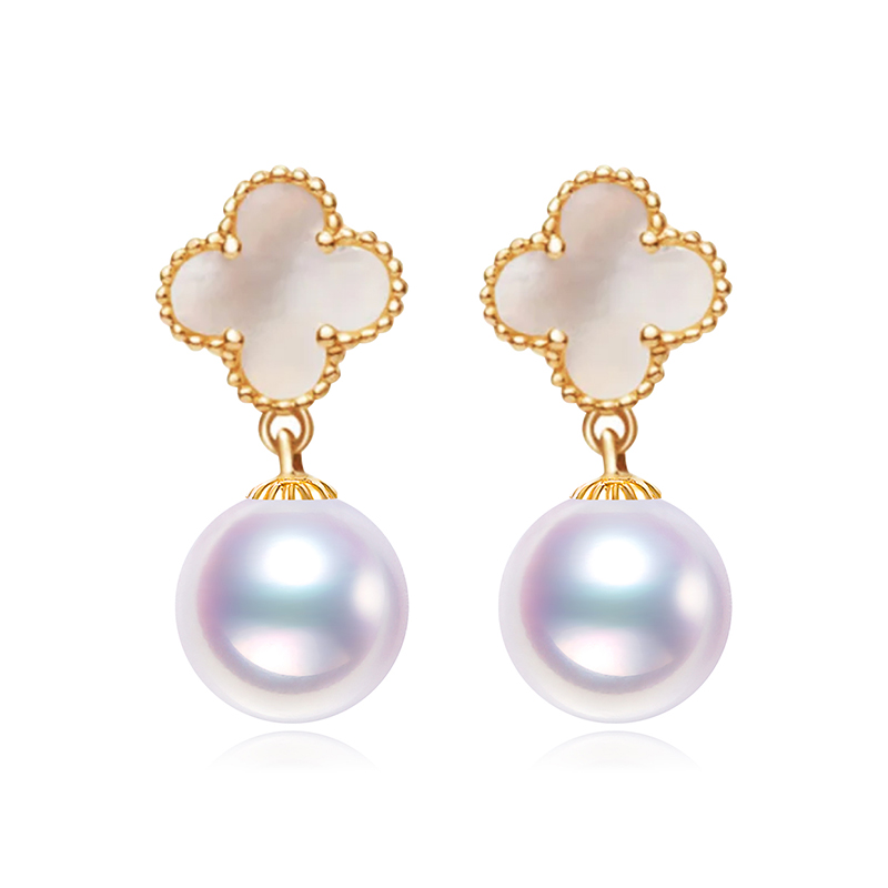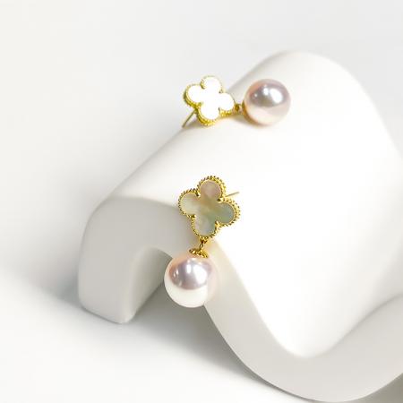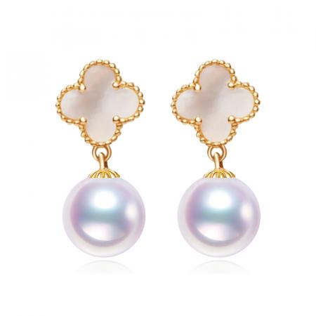 CLORIS 【热销】克劳瑞斯 日本Akoya海水珍珠 耳环 四叶草8-8.5mm