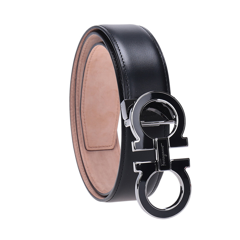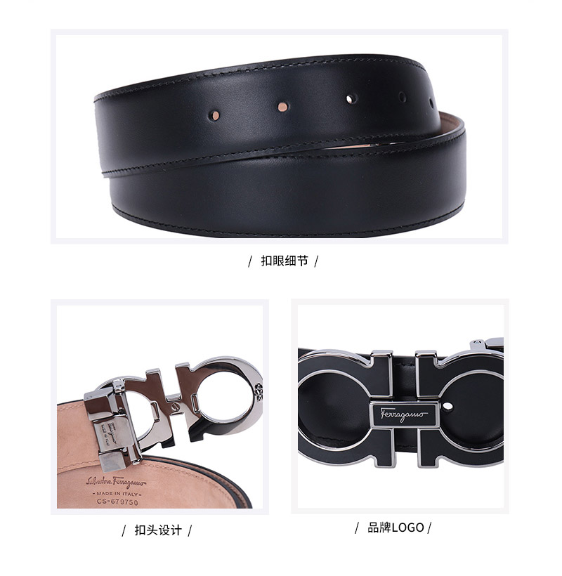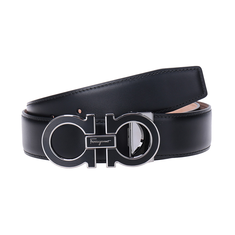 自营Ferragamo 菲拉格慕 新品 男士黑色牛皮板扣可裁剪3.2cm皮带腰带 679750 0671502