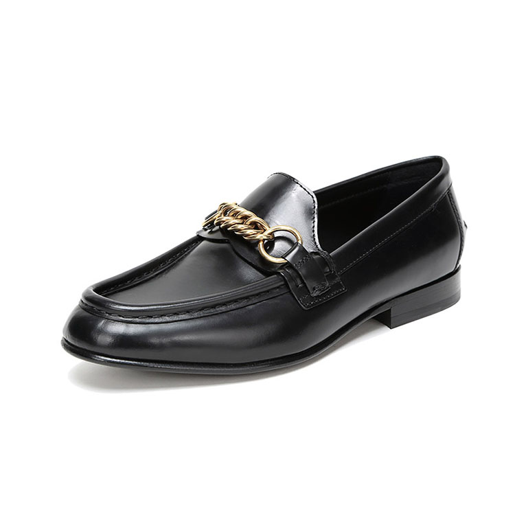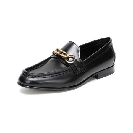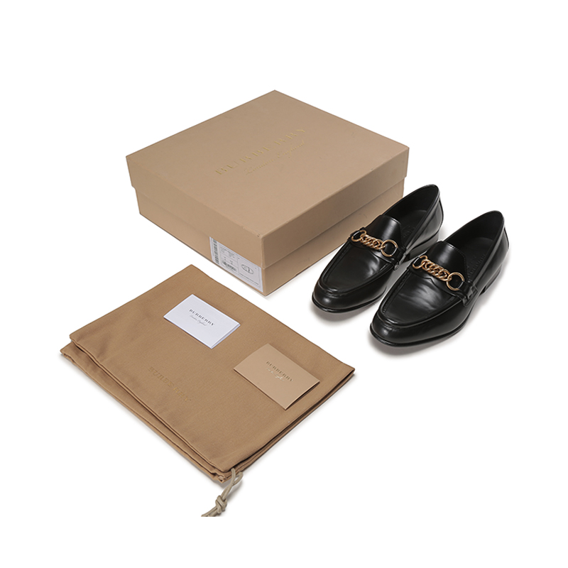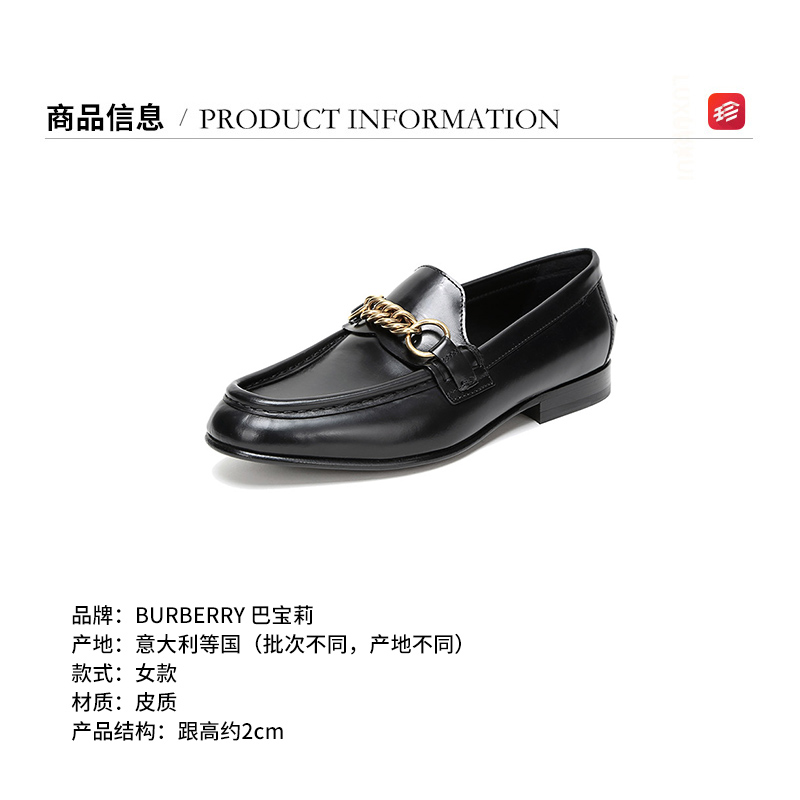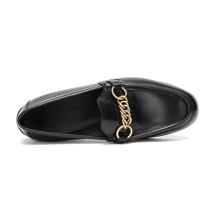 自营Burberry 博柏利 女士黑色皮质链环休闲便鞋乐福鞋 40786741
