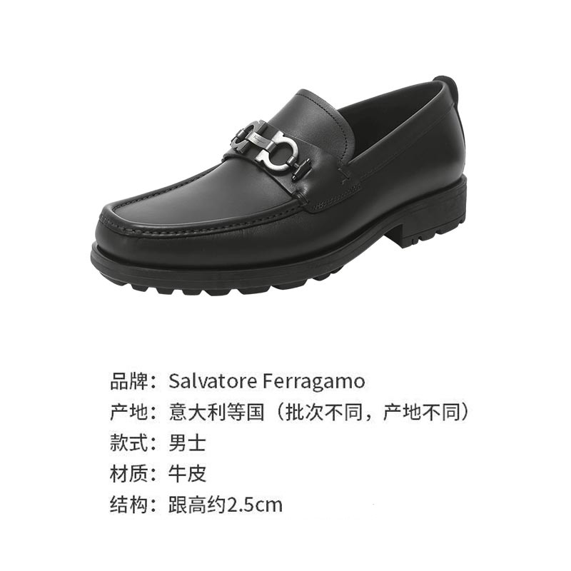 自营Ferragamo 菲拉格慕 【新品】男士DAVID系列复古做旧黑色牛皮休闲鞋莫卡辛鞋 0671792