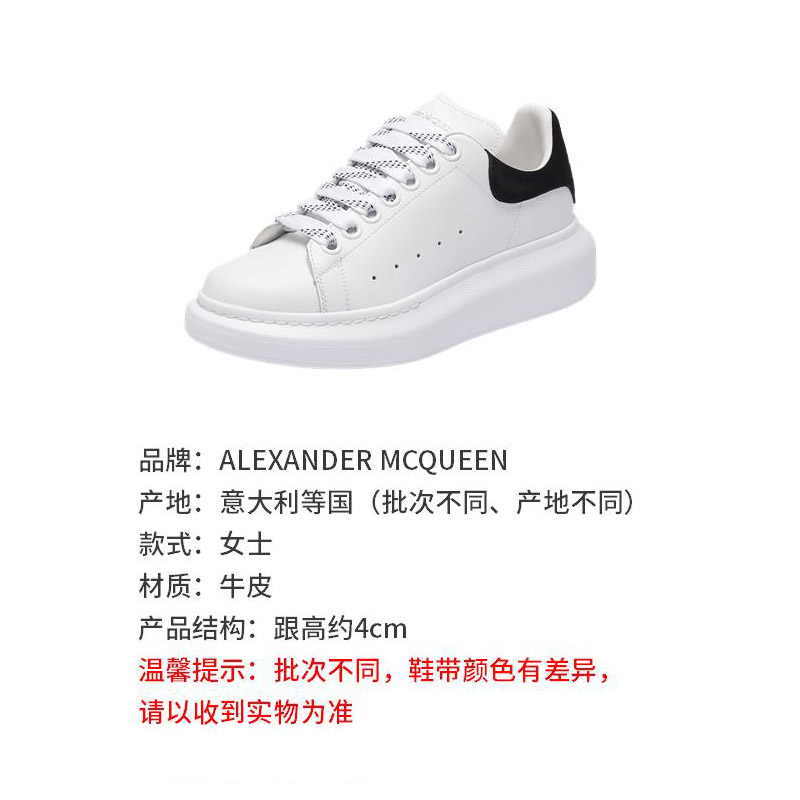 自营Alexander Mcqueen 亚历山大·麦昆女士白色黑尾牛皮厚底运动鞋小白鞋 553770 WHGP7 9061