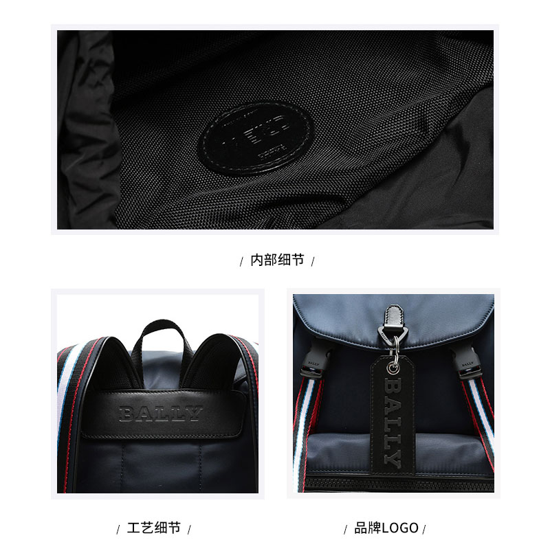 自营Bally 巴利男包 男士墨蓝色织物手提双肩包背包电脑包 CREW SM T 57