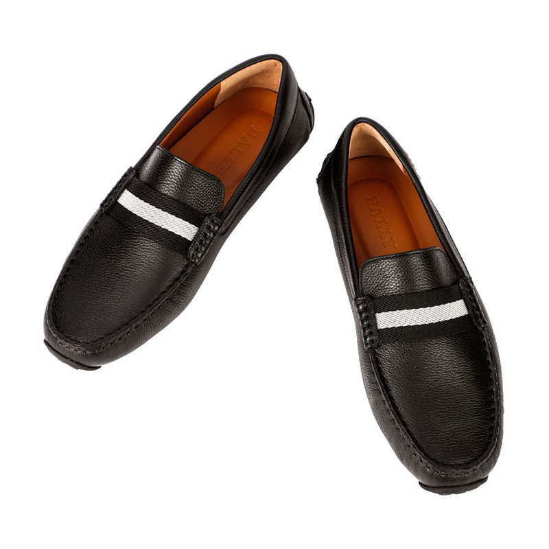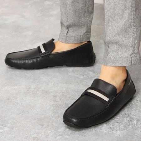 自营Bally 巴利男士黑色牛皮驾驶鞋便鞋 PEARCE 300