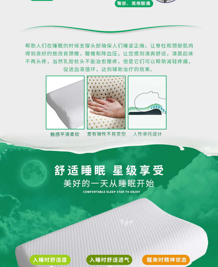 非常好的乳胶枕,给女儿用的。每次看她脖子悬空睡觉,总担心脊椎弄坏,这不立马换了个好枕头。好评!!!