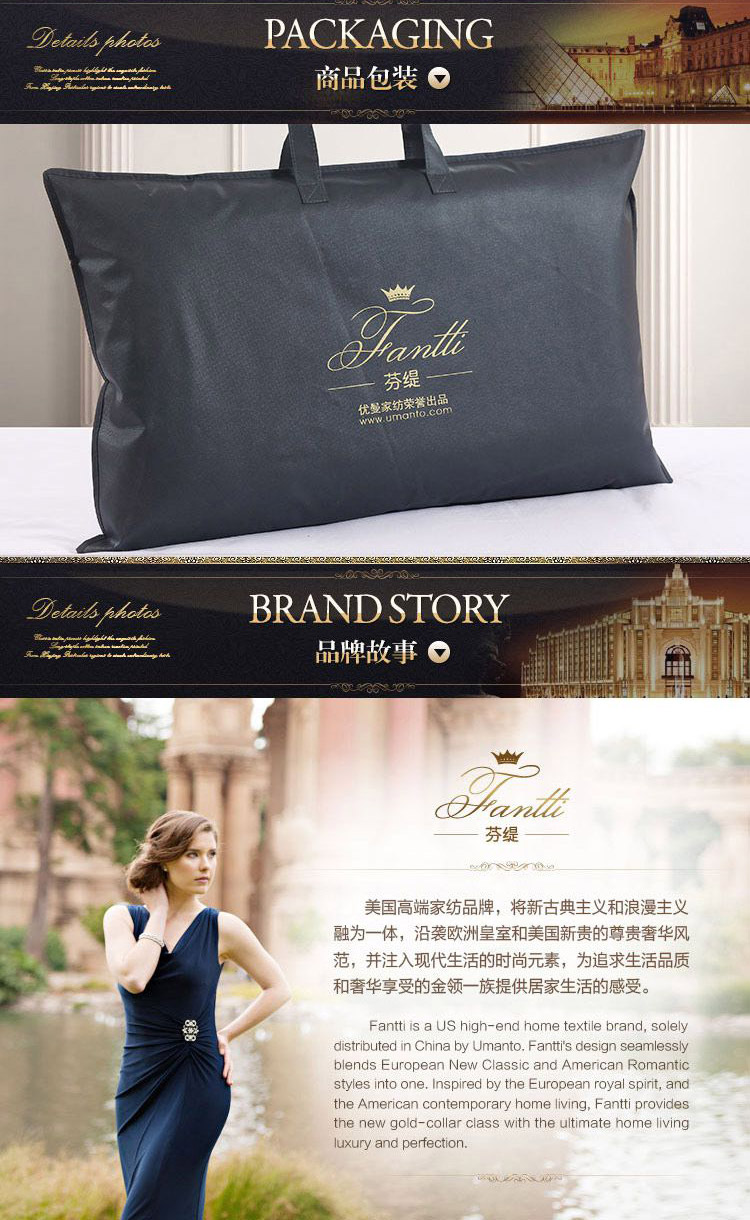 优曼集团(Umanto Group Ltd.)是美国家纺用品企业,营造家居时尚空间,推崇舒适、优雅、品质的生活方式。产品设计风格融合美式风情与东方文化,更把产品带给全球顾客。优曼集团旗下有Umanto、Vena Rosa、Fantti、Vena Rosa Kids四个子品牌。Fantti芬缇将新古典主义和浪漫主义融为一体,沿袭欧洲皇室和美国新贵的尊贵奢华风范,并注入现代生活的时尚元素,为追求生活品质和奢华享受的金领一族提供居家生活的极致感受。