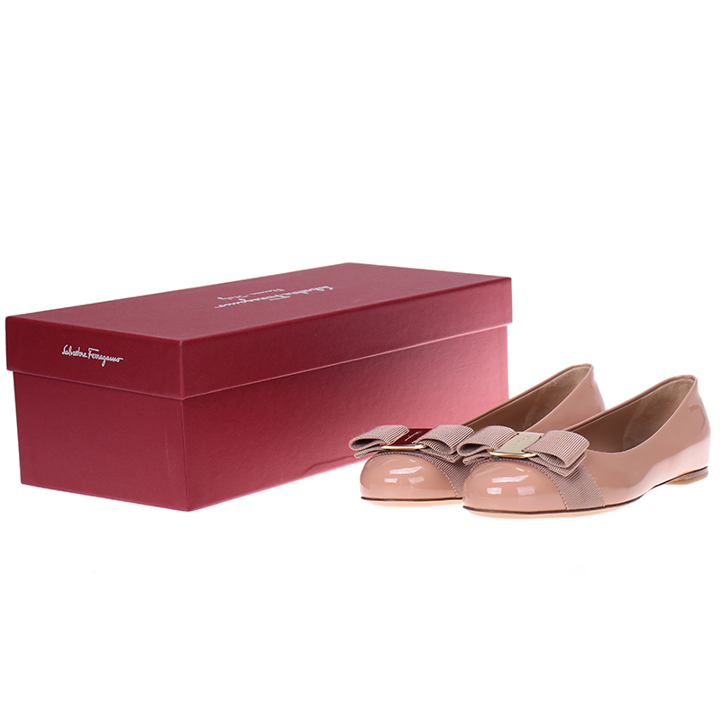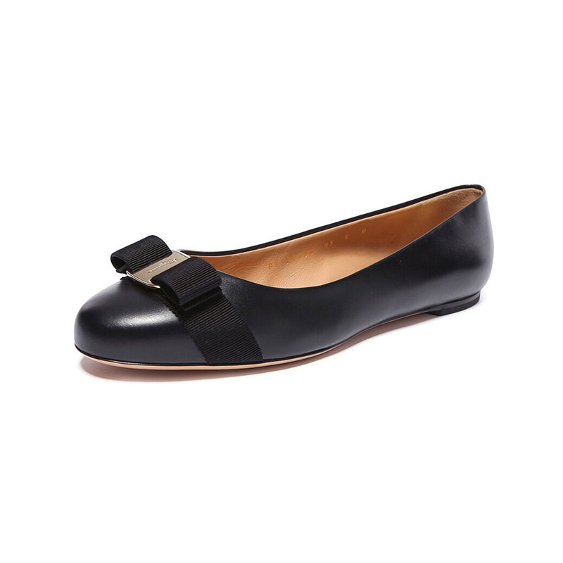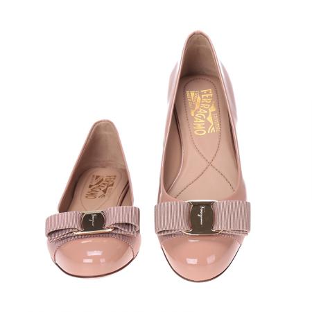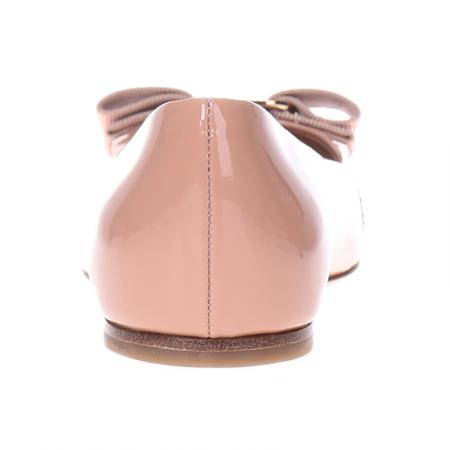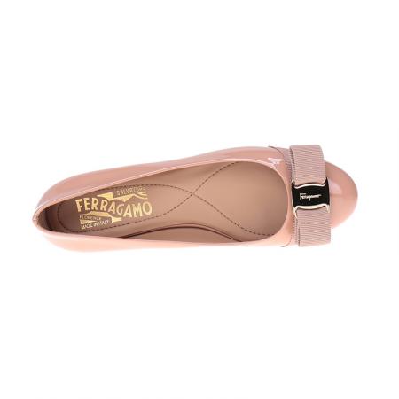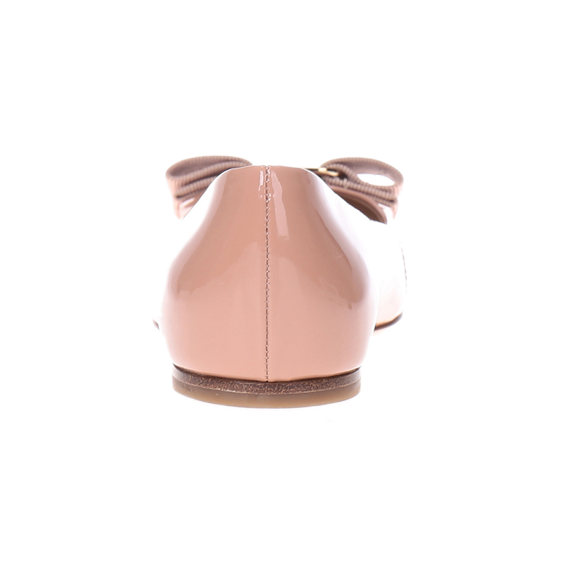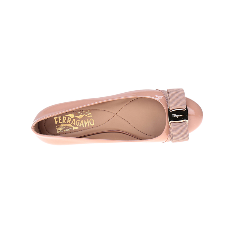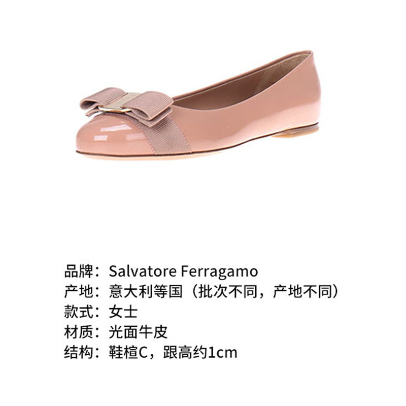 自营Ferragamo 菲拉格慕 女士VARINA系列裸粉色光面牛皮蝴蝶结平底鞋 0676235
