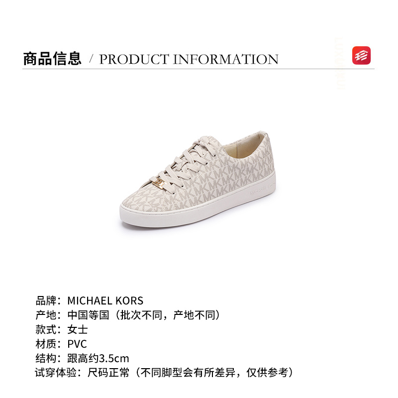 自营Michael Kors 迈克·科尔斯 女士香草色印花PVC休闲鞋平底鞋板鞋KEATON老花图案 43R5KTFP1B VANILLA