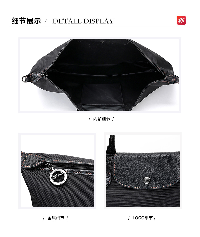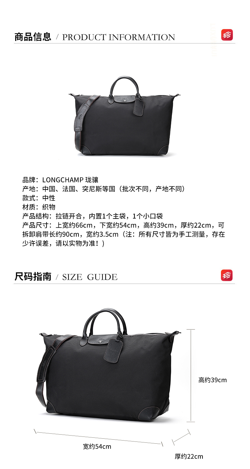 自营Longchamp 珑骧 新品 Boxford 中性系列黑色织物特大号可折叠大容量手提肩背旅行包旅行袋 1625 080 001