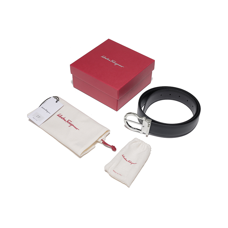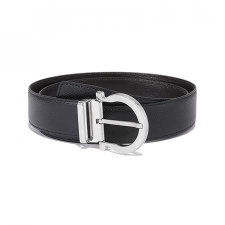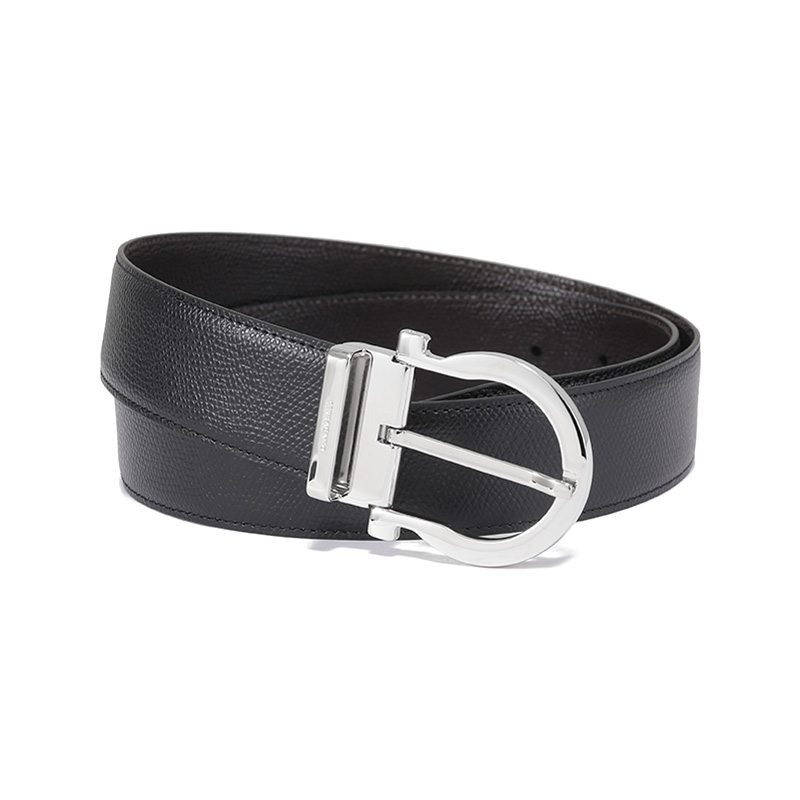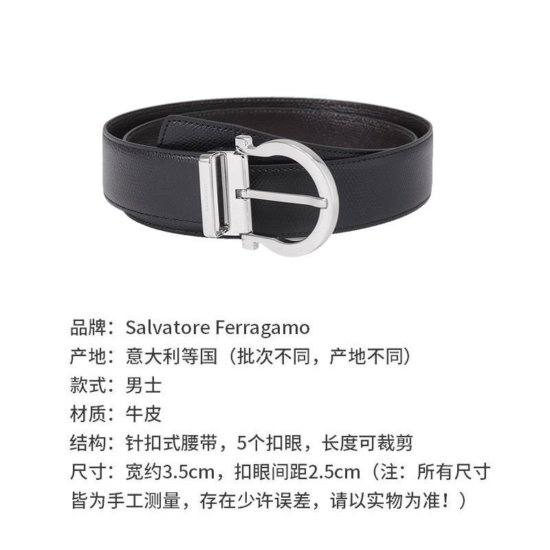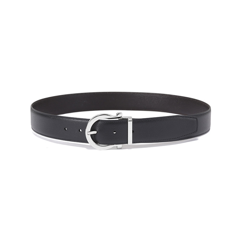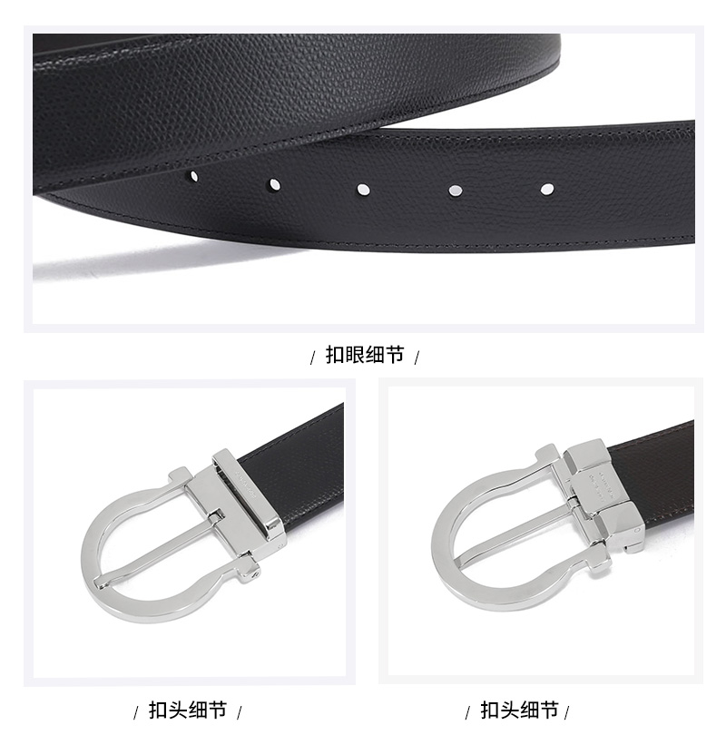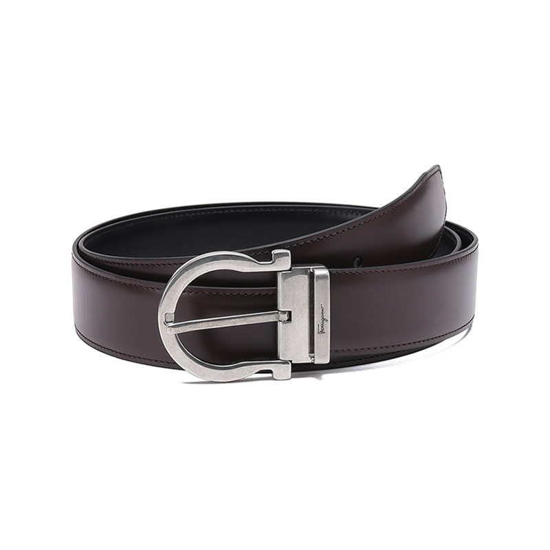 自营Ferragamo 菲拉格慕 新品 男士黑色深棕色牛皮针扣式双面皮带腰带 679781 0675140