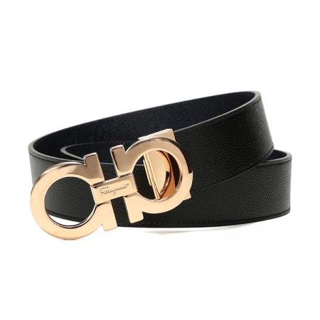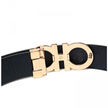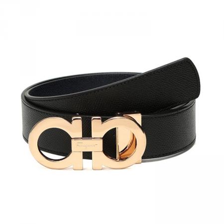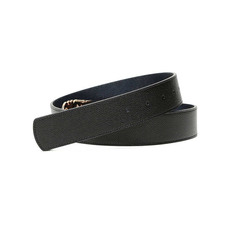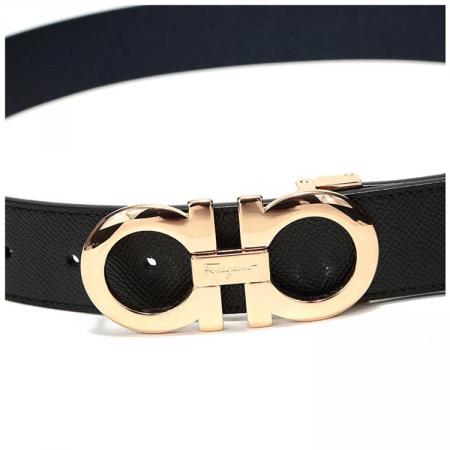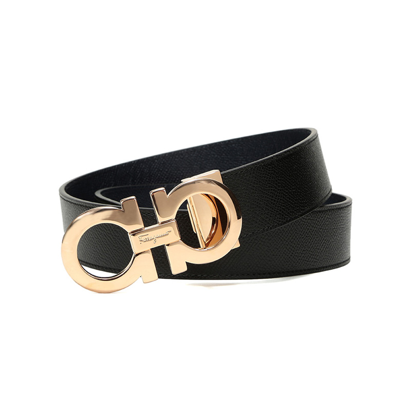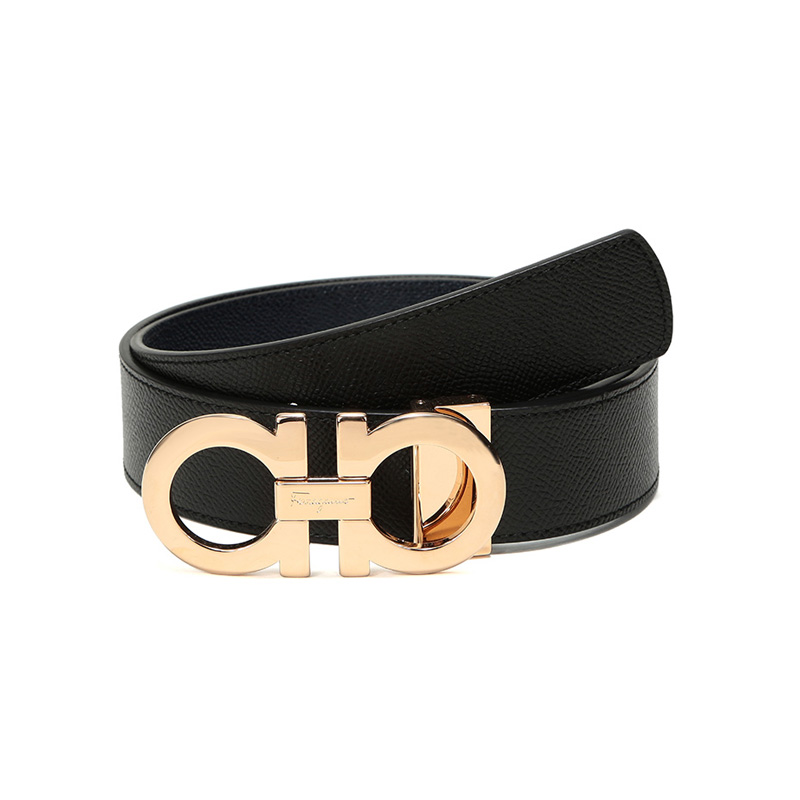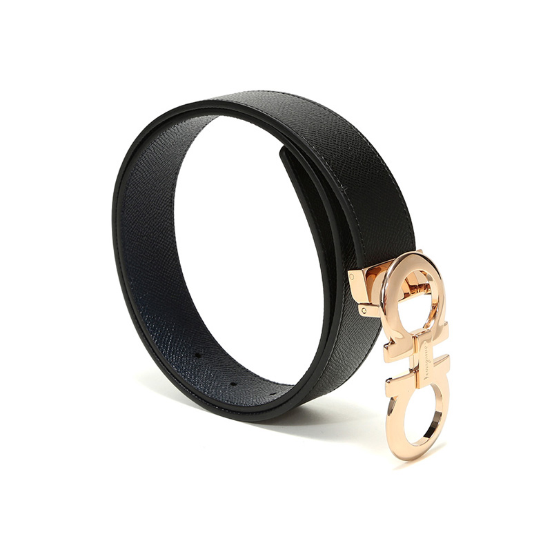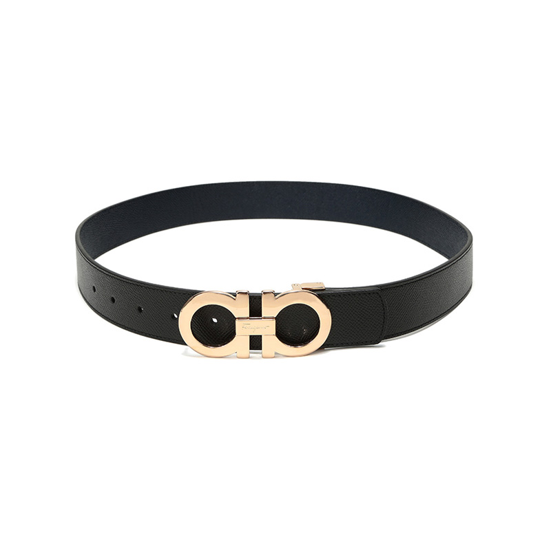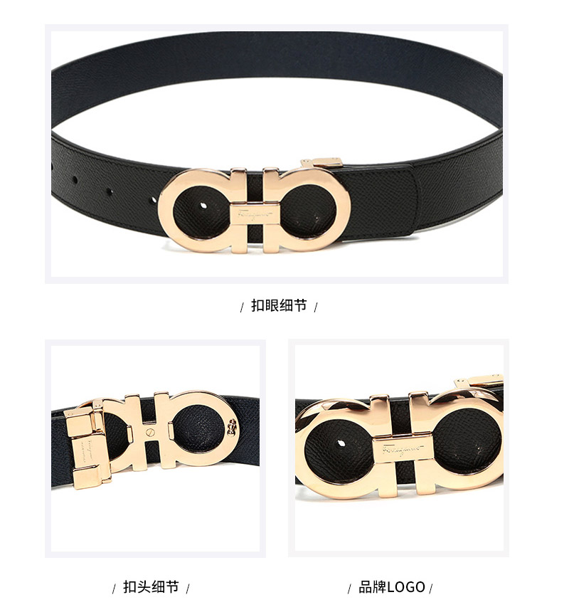 自营Ferragamo 菲拉格慕男士黑色群青色牛皮板扣式可裁剪双面皮带腰带3.5cm 675542 0714423