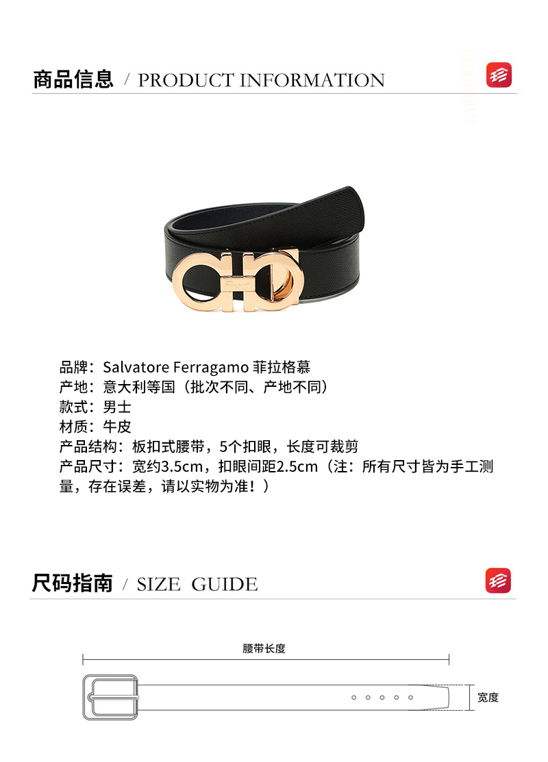 - 结构:板扣式腰带,5个扣眼,长度可裁剪