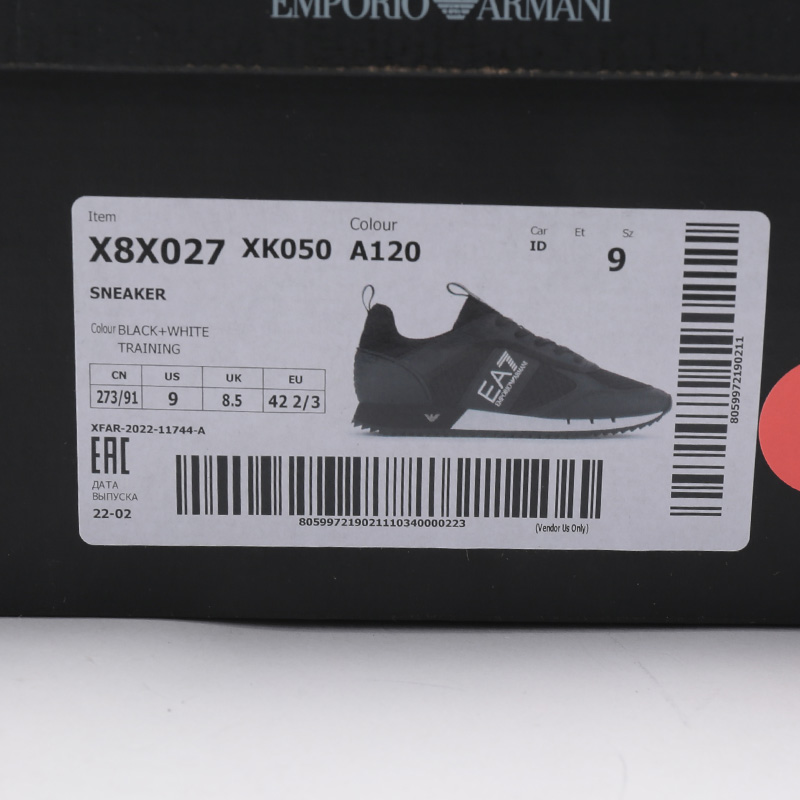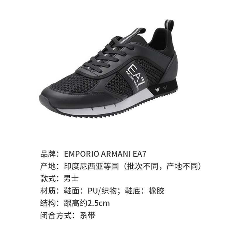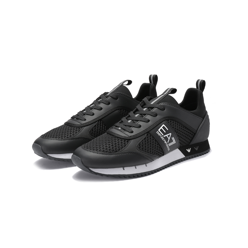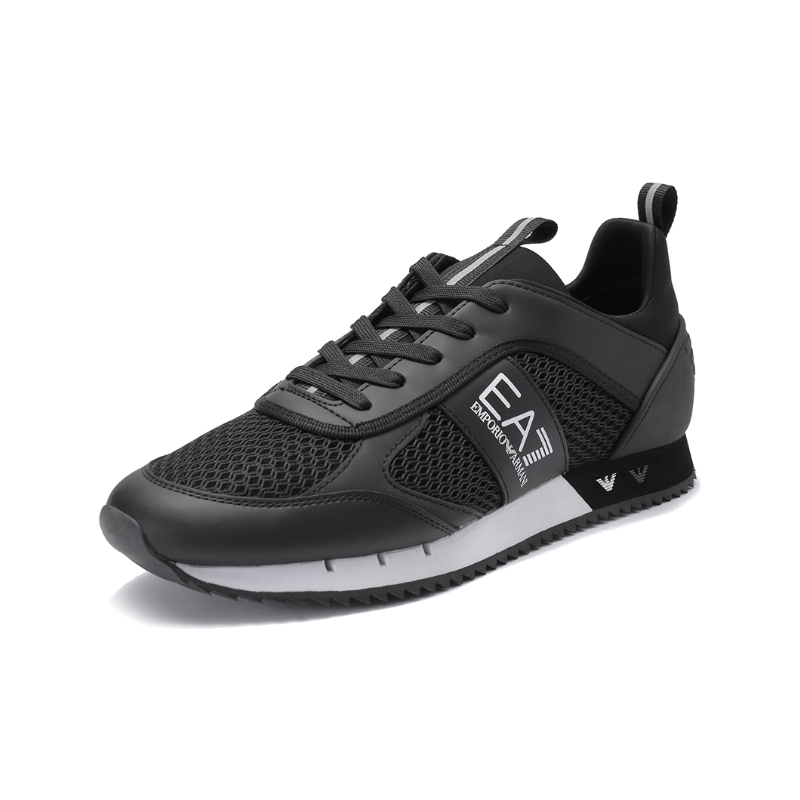 自营EA7 阿玛尼 【新品】男士黑色PU/织物网眼系带休闲运动鞋 X8X027 XK050 A120