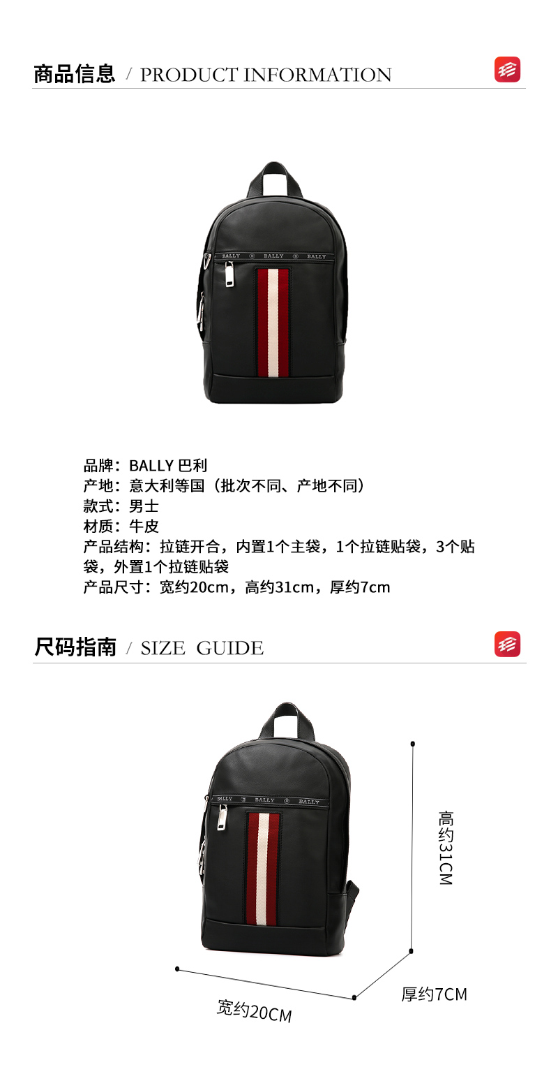 自营Bally 巴利 男包 男士黑色红白条纹牛皮腰包/胸包 HARI 10 6227996