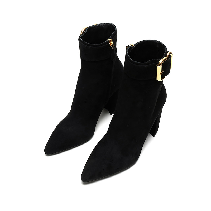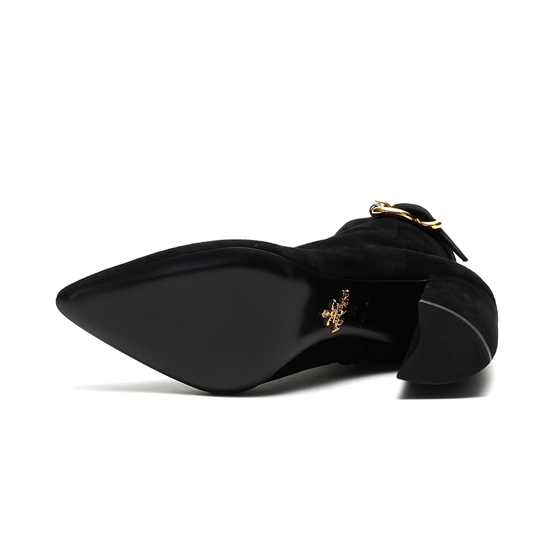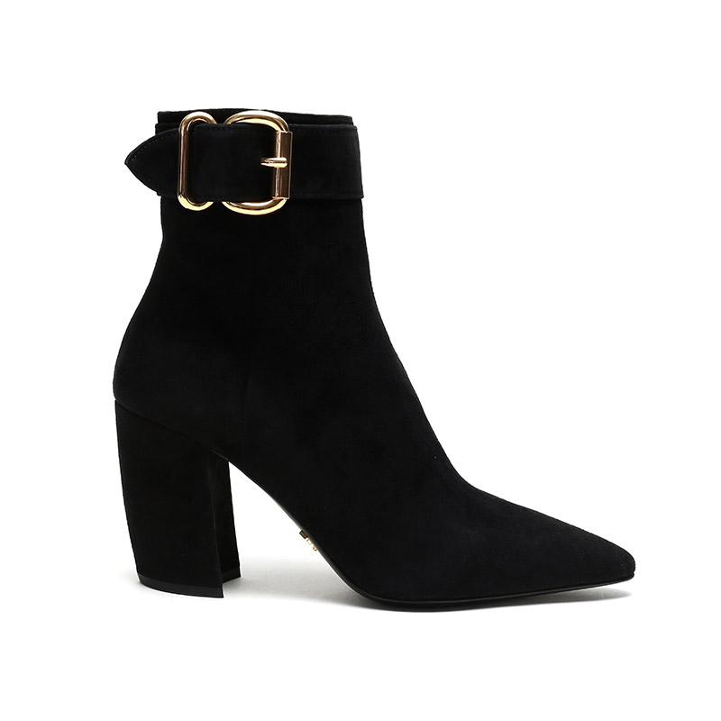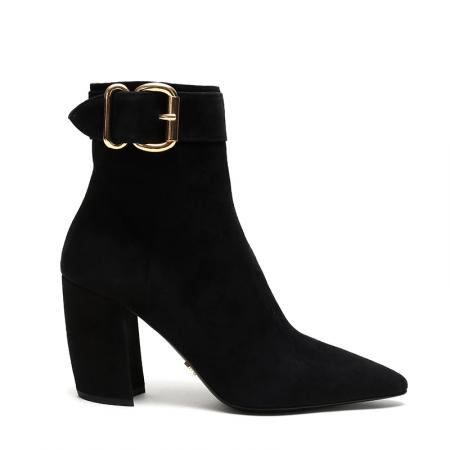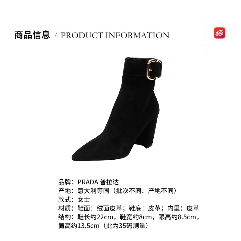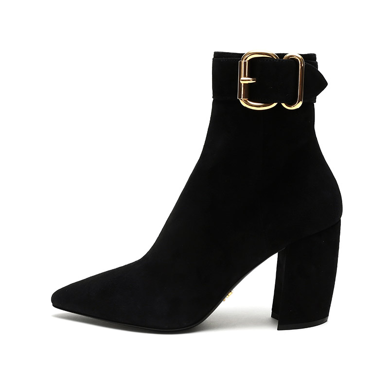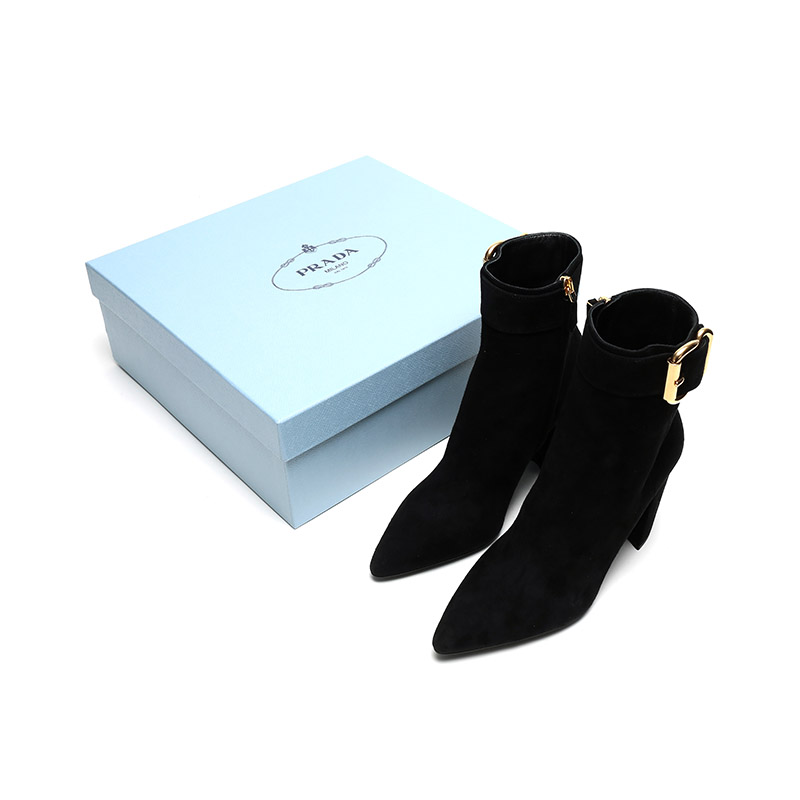 自营Prada 普拉达 女士黑色绒面皮革高跟短靴裸靴跟高8.5cm 1T774L 008 F0002 F 085