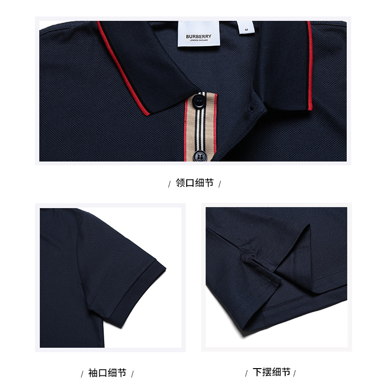 自营Burberry 博柏利男士海军蓝TB标识棉质短袖POLO衫 80170071