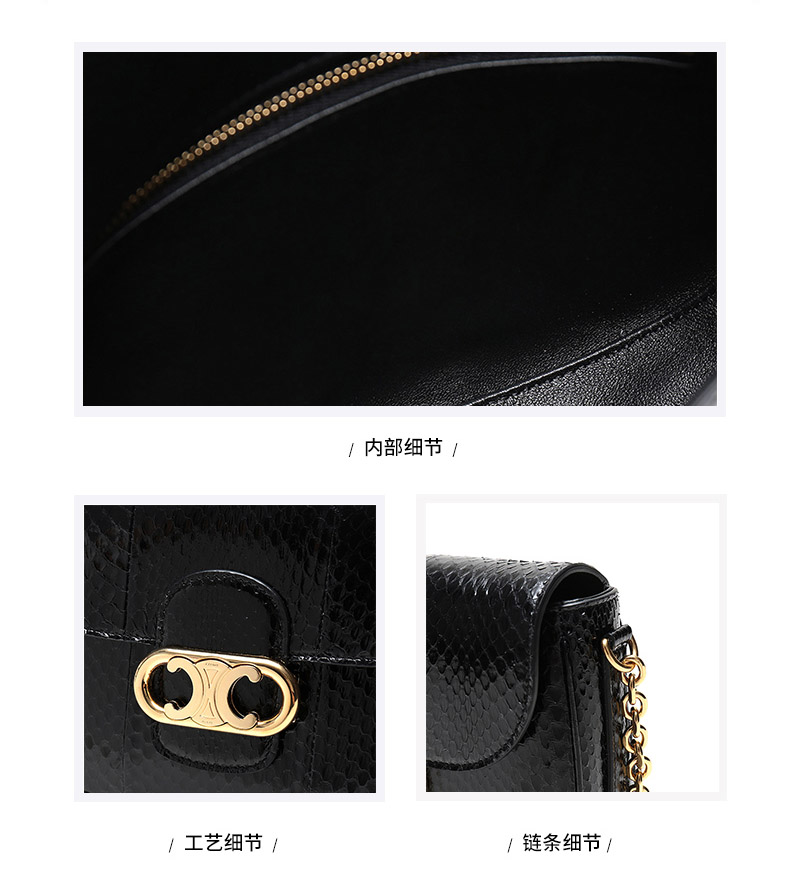 自营CELINE 赛琳/思琳 女包 女士黑色MAILLON TRIOMPHE中号皮质单肩斜挎包 191344BUO 38NO
