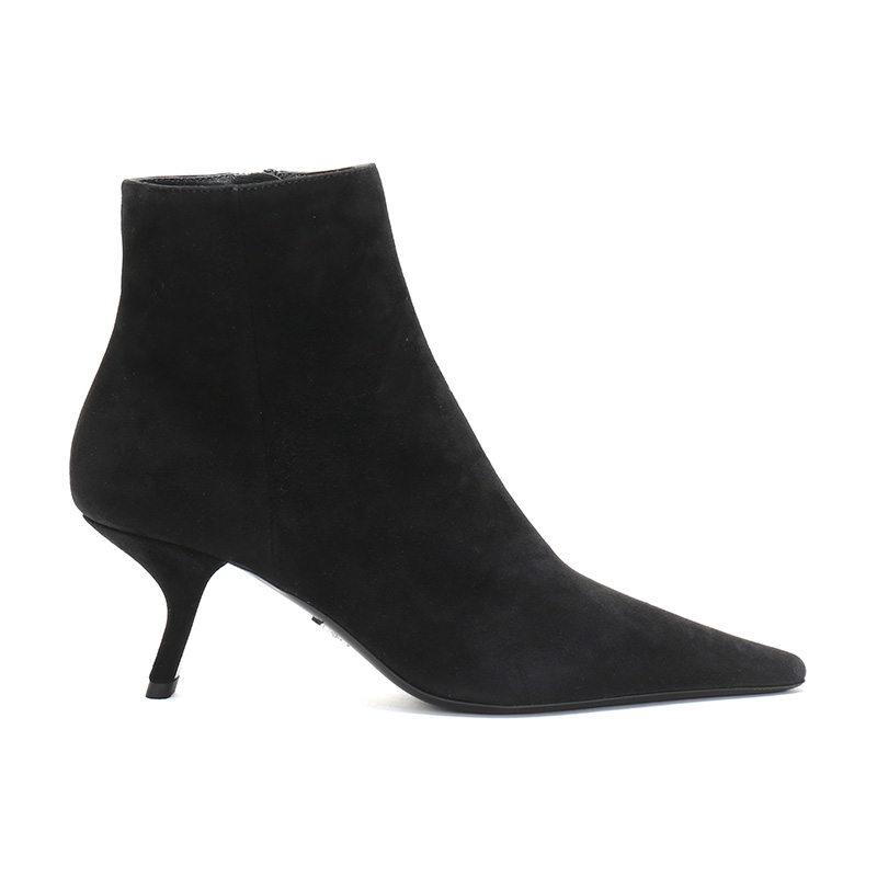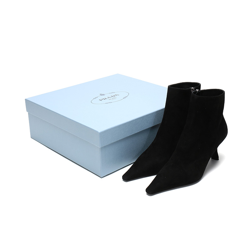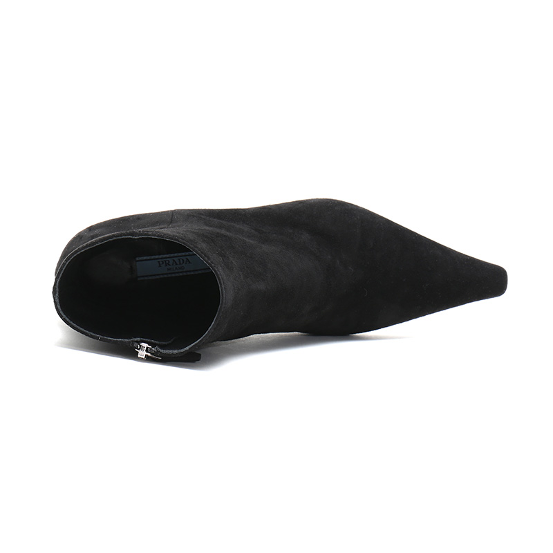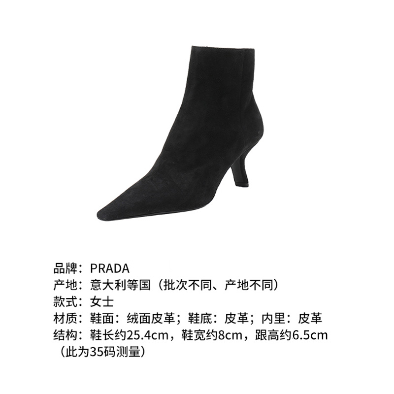 自营Prada 普拉达 女士黑色绒面皮革高跟短靴跟高6.5cm 1T719L 008 F0002 F 065