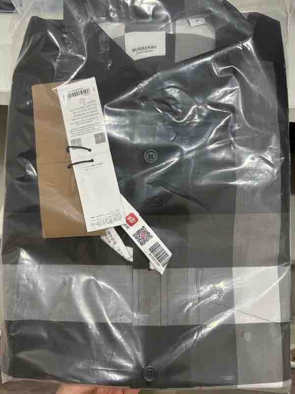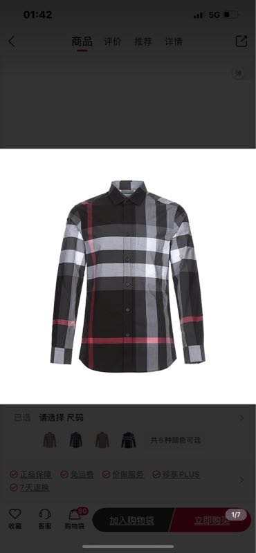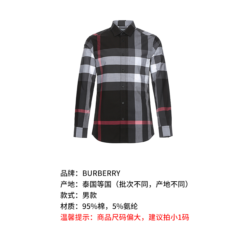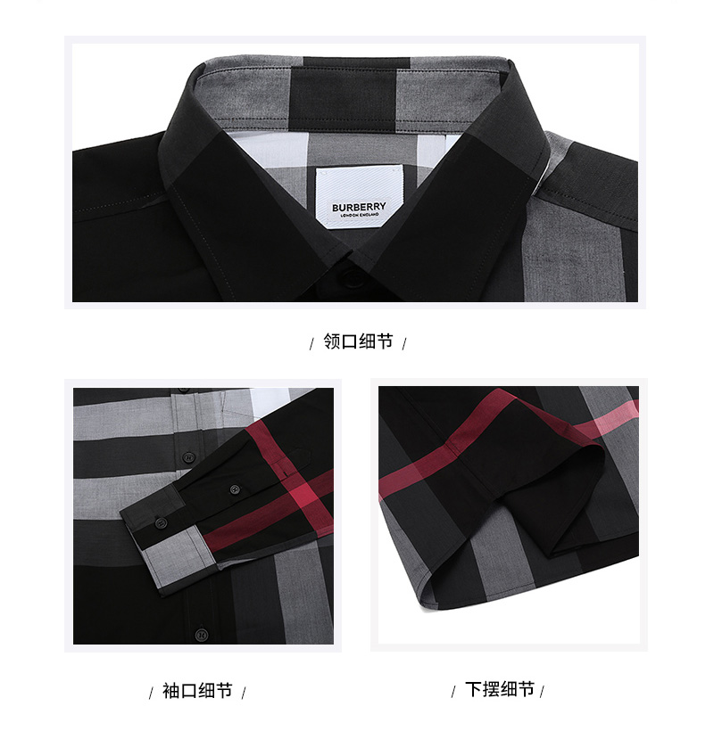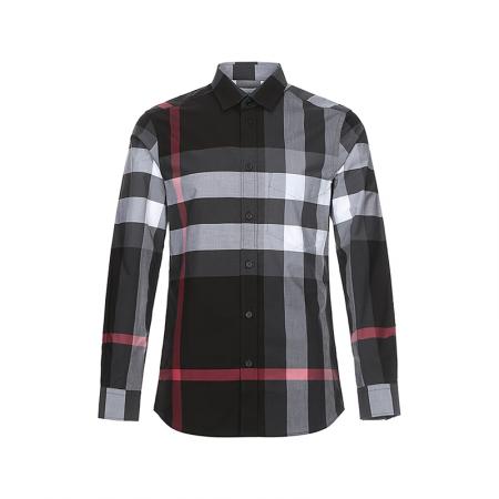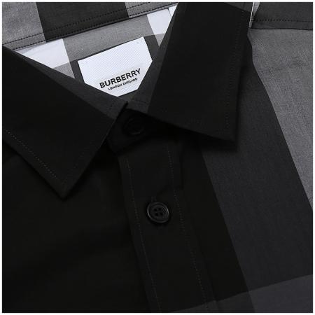 自营Burberry 博柏利男士炭灰色多色格纹棉质长袖衬衫 80237721