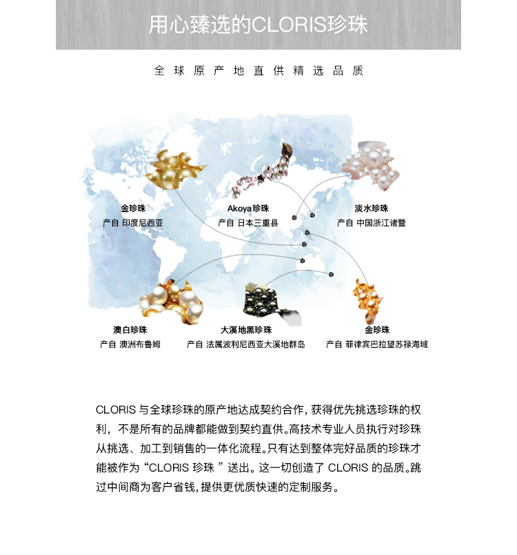 CLORIS创立于2008年,品牌诞生于香港,致力于原创设计制作最适合亚洲人的珠宝轻奢品牌。CLORIS 源自古希腊神话掌管鲜花的女神CONNIE CONSTANCE。简约,经典,艺术,超凡脱俗的设计是每一季原创新品的追求极致。 CLORIS注重珠宝的优雅,神圣,灵气。使得每件独特的作品得到最大程度的展现。