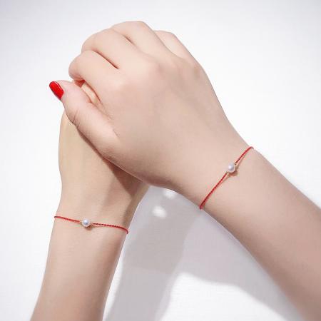 CLORIS 【热销礼物】克劳瑞斯 日本Akoya海水珍珠红绳手链 本命年 幸运红绳 礼物 5.5-6mm(此款商品为定制款 发货时间约3-5天)