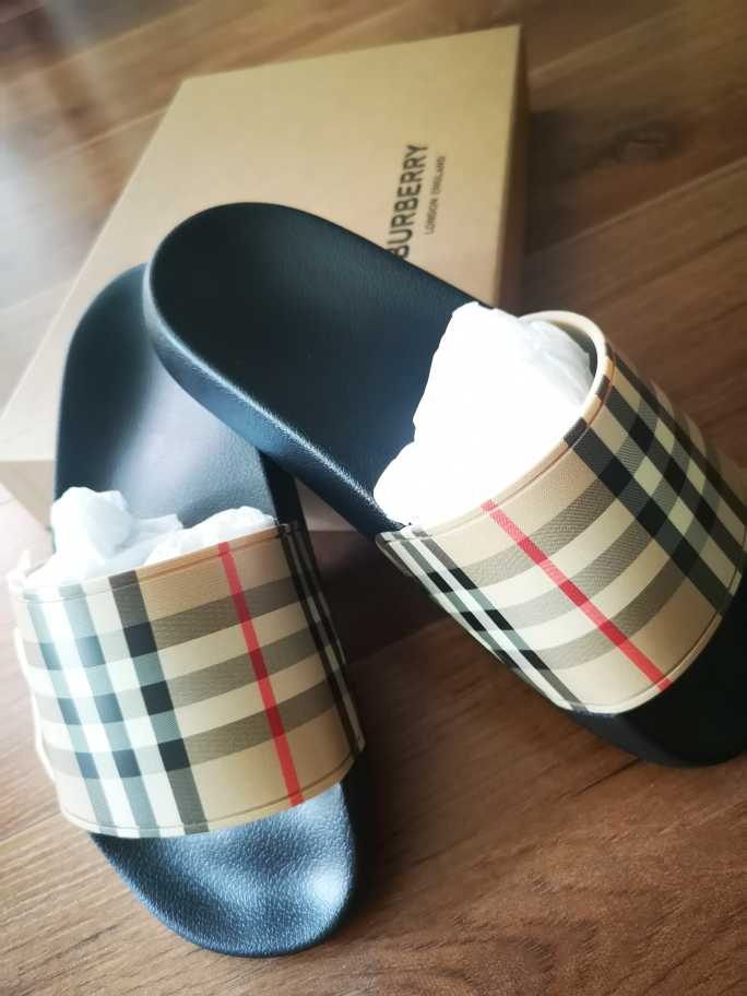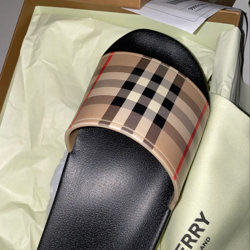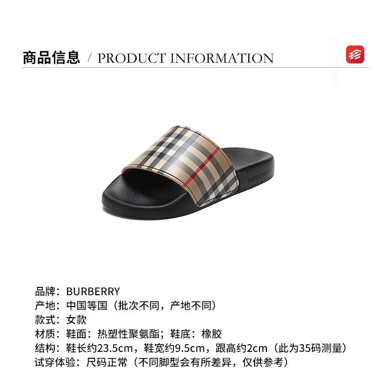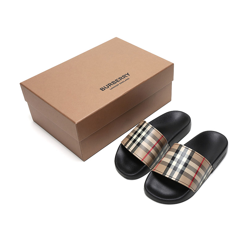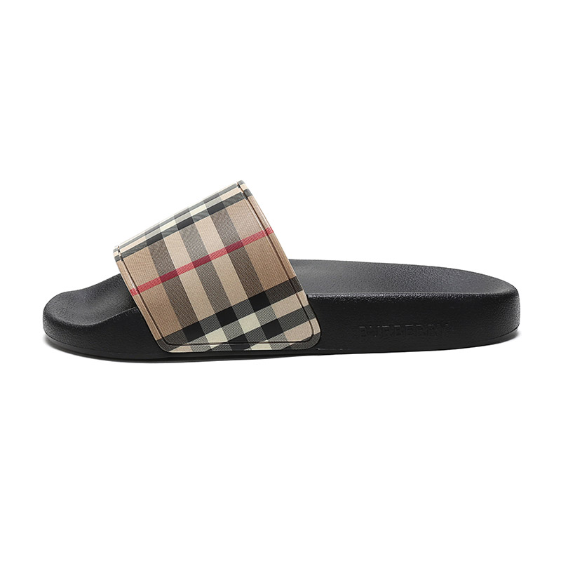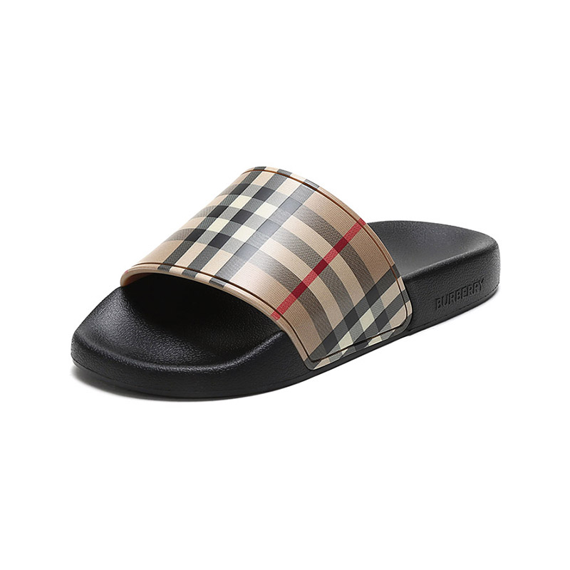 自营Burberry 博柏利女士典藏米色Vintage格纹热塑性聚氨酯拖鞋凉拖 80242321