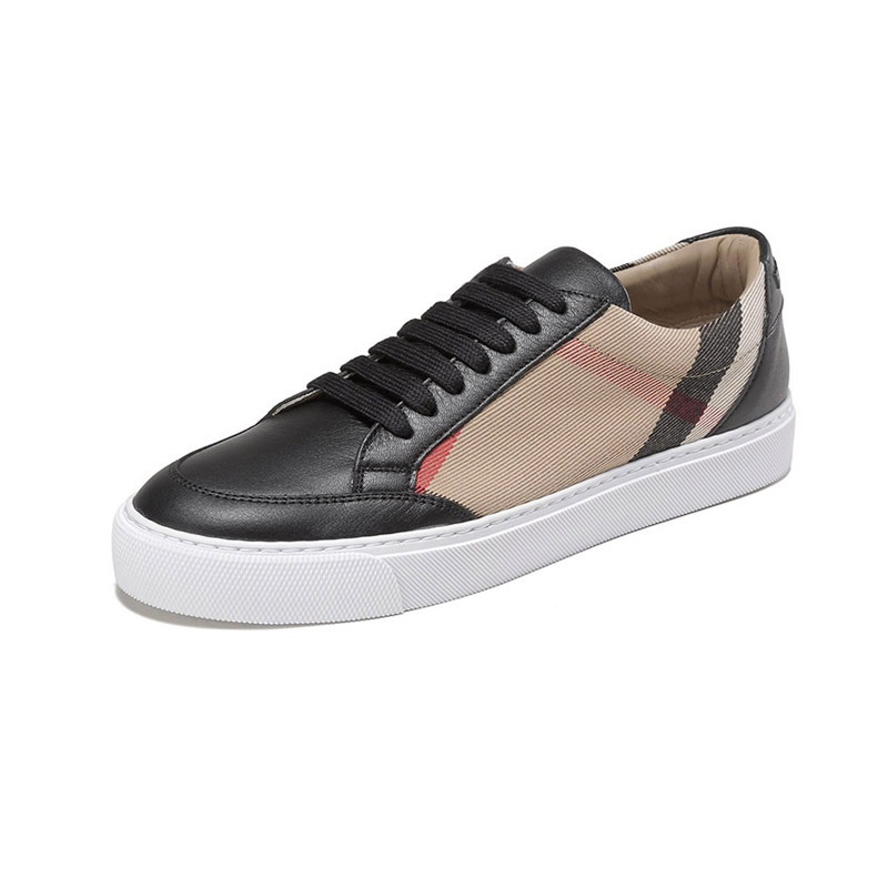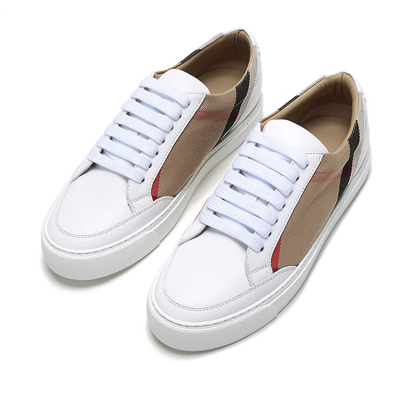 自营Burberry 博柏利女士光白色House格纹织物配皮系带休闲运动鞋板鞋 80243261