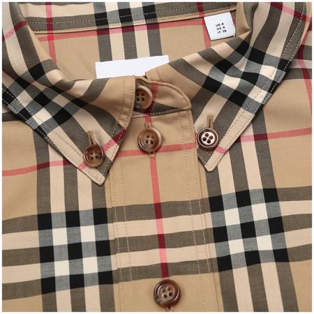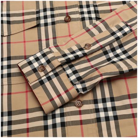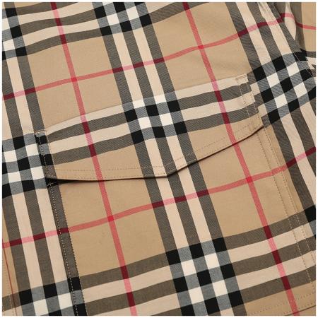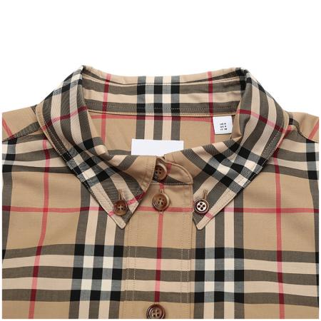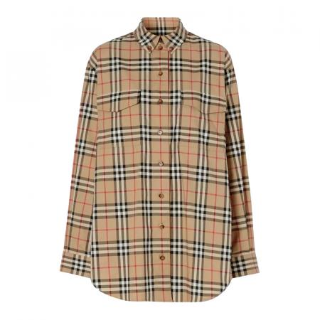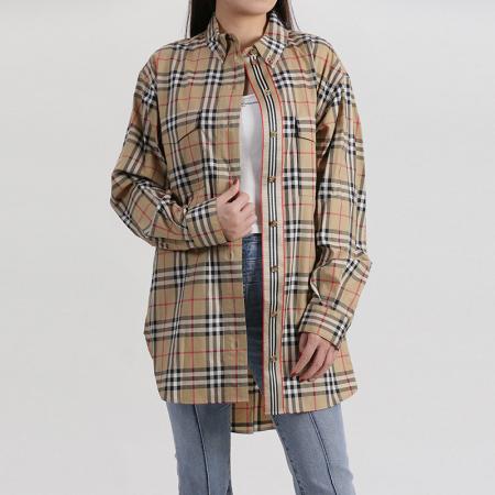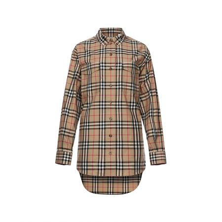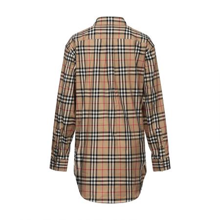 自营Burberry 博柏利 女款典藏米色Vintage格纹棉质中长款宽松版休闲长袖衬衫 80222851