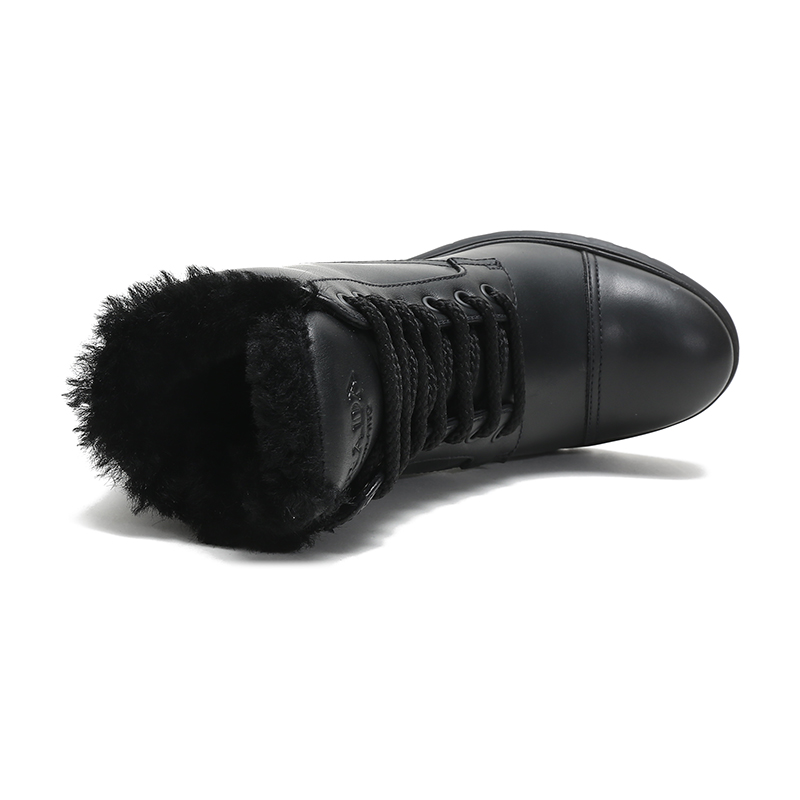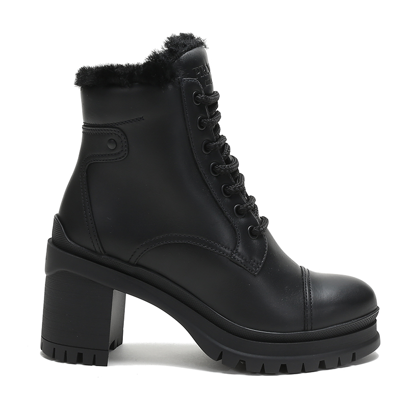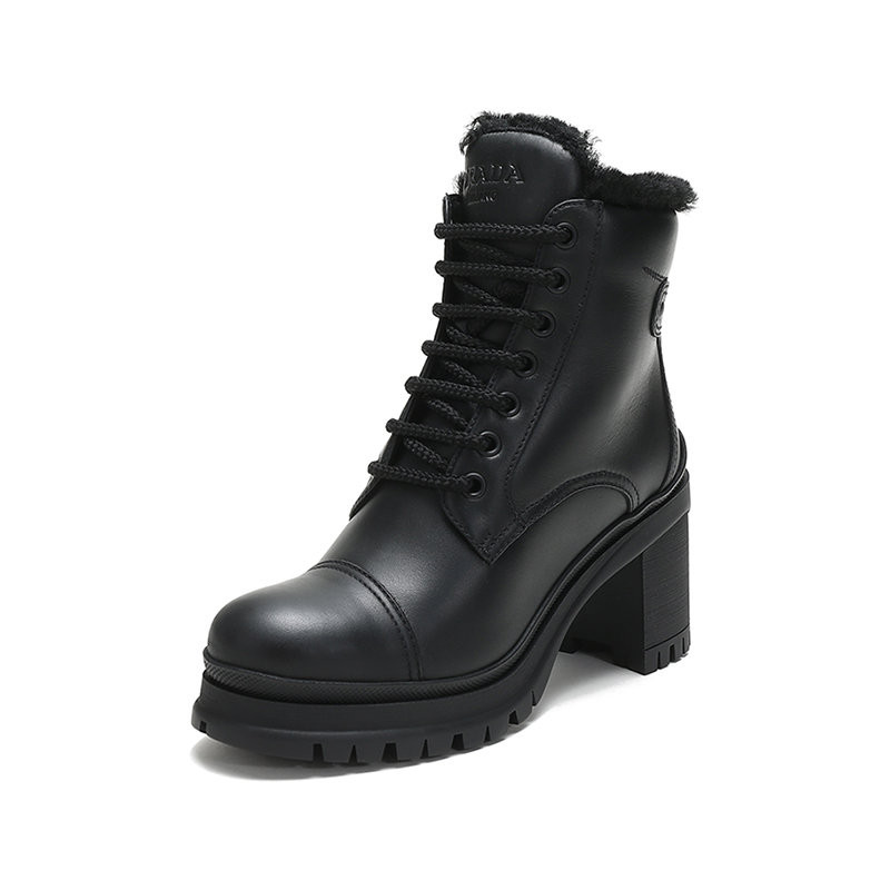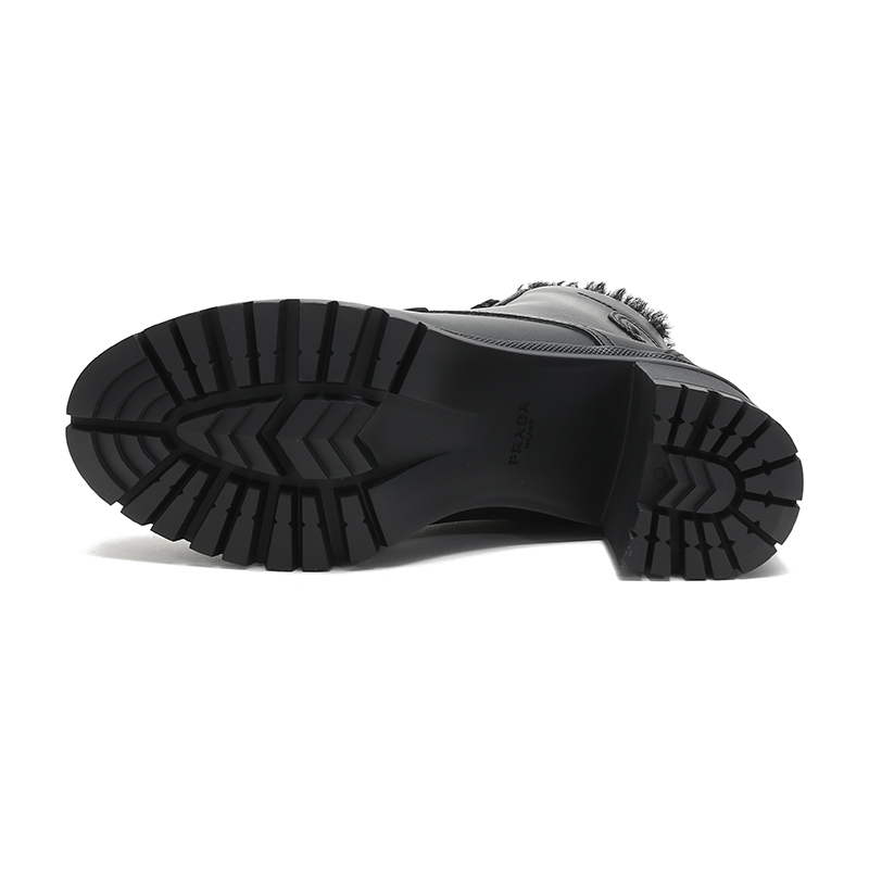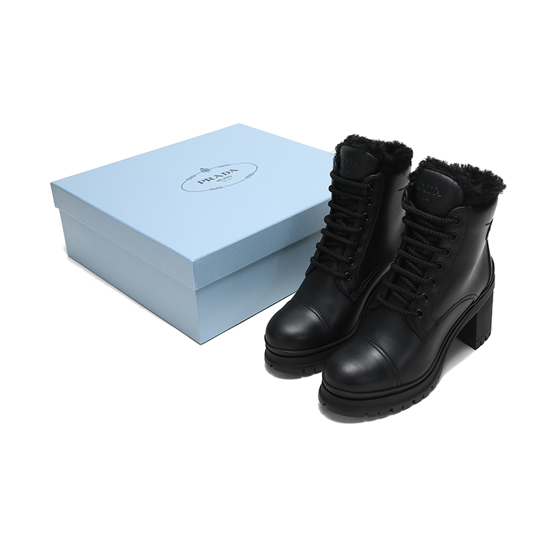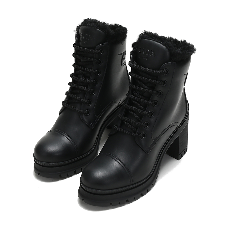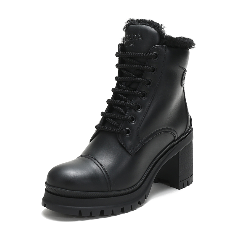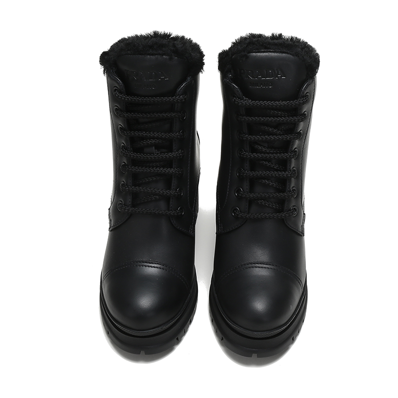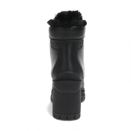 自营Prada 普拉达 女士牛皮加毛保暖高跟短靴黑色跟高8cm 1T584L 3KK9 F0002 F ZF55