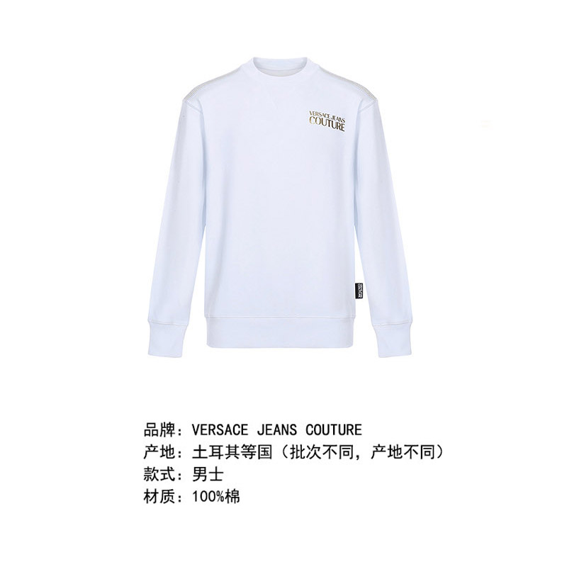 自营Versace Jeans Couture 范思哲 男士白色棉质圆领oversize宽松版长袖卫衣运动衫 B7GVA7FB 13956 003