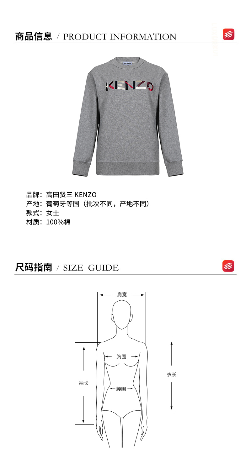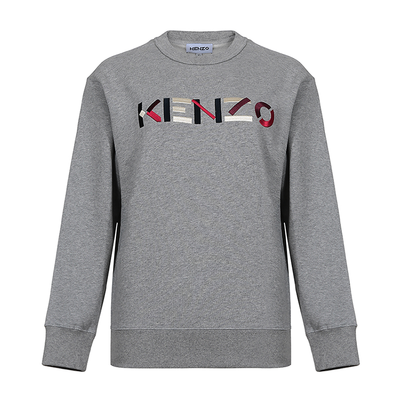 自营Kenzo 高田贤三 女士棉质加绒款圆领长袖卫衣运动衫珍珠灰色刺绣LOGO图案 FA6 2SW820 4MO 94