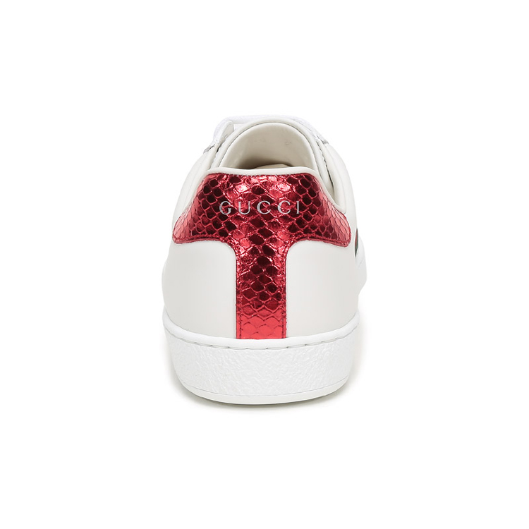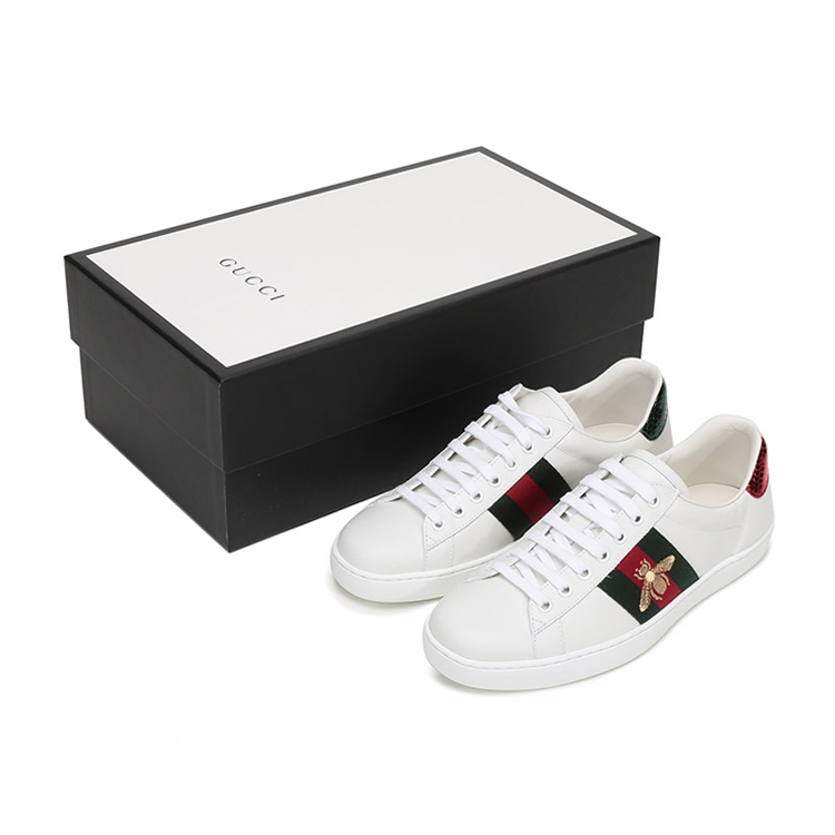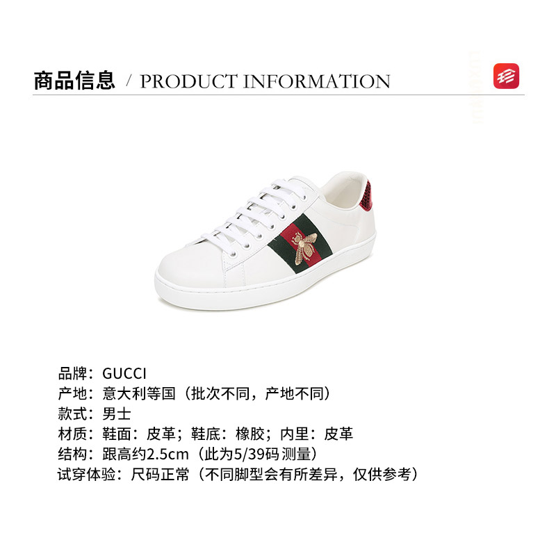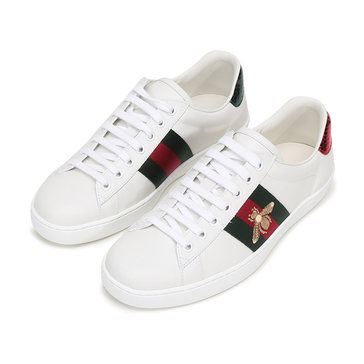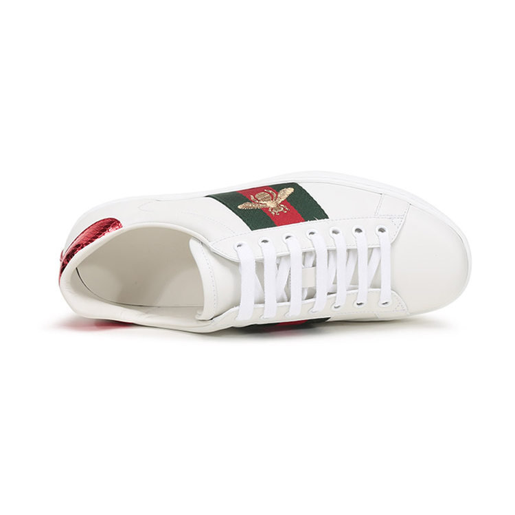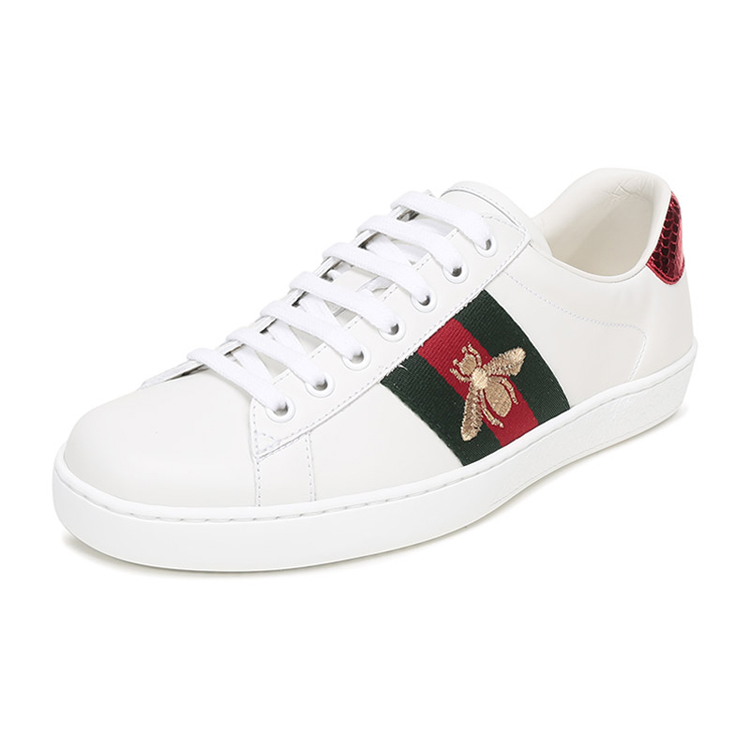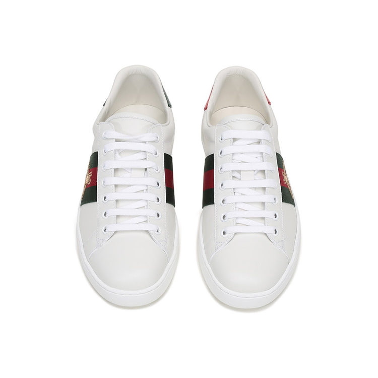 自营Gucci 古驰 男士皮革低帮系带运动鞋休闲鞋白色红绿条纹蜜蜂刺绣情侣款 429446 02JP0 9064