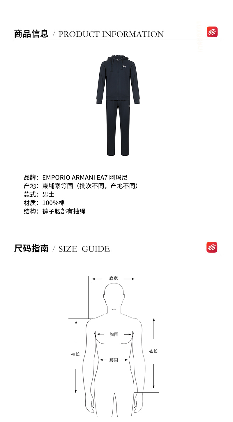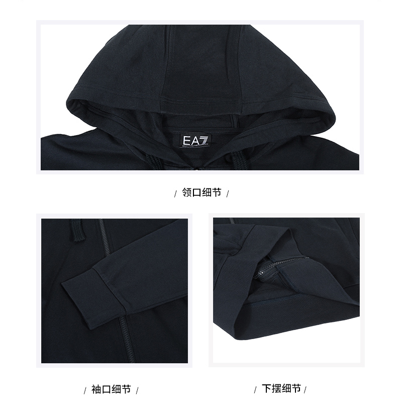 自营EA7 阿玛尼 男士夜蓝色棉质连帽拉链卫衣开衫运动衫运动裤运动套装 8NPV50 PJ05Z 1578