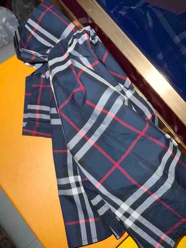 自营Burberry 博柏利 男士海军蓝格纹棉质短袖衬衫 80208721