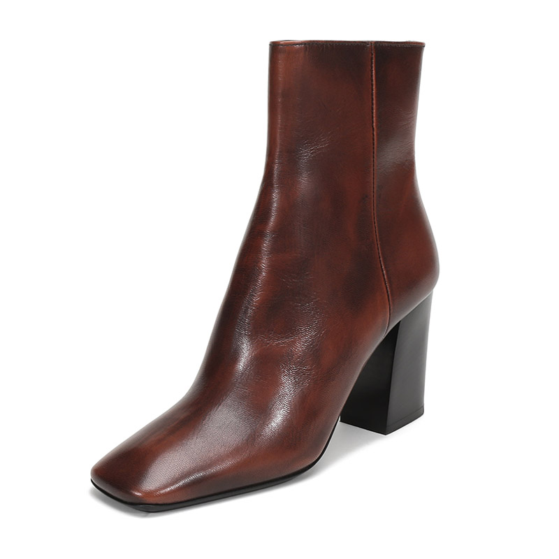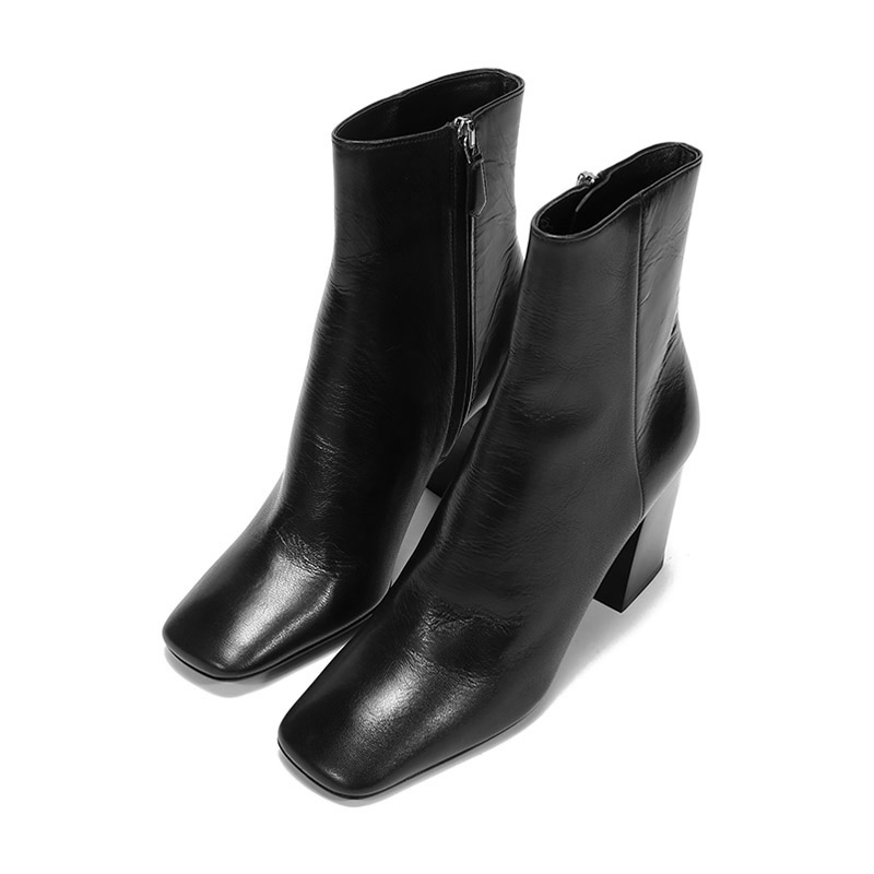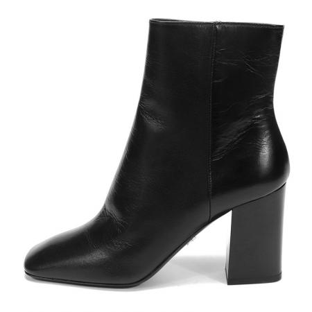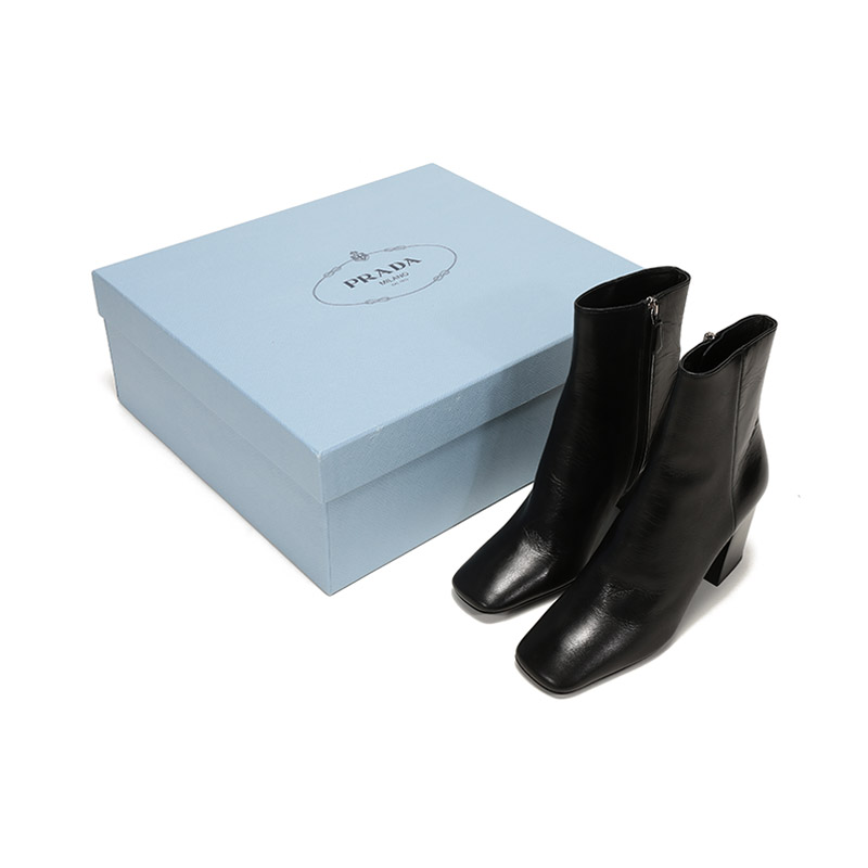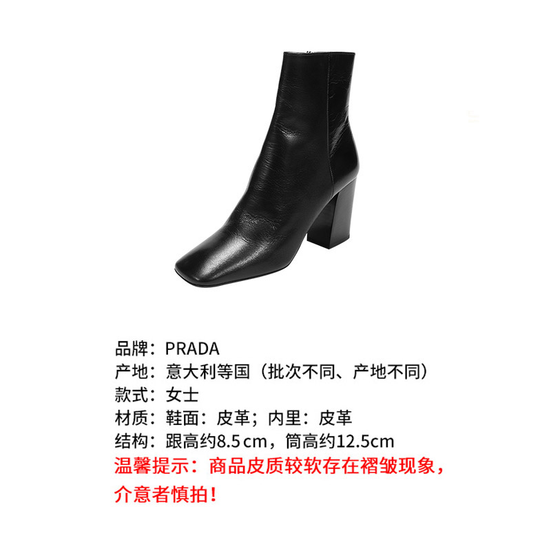 自营Prada 普拉达 女士皮革高跟方头靴子短靴黑色跟高8.5cm 1T722L P70 F0002 F B085