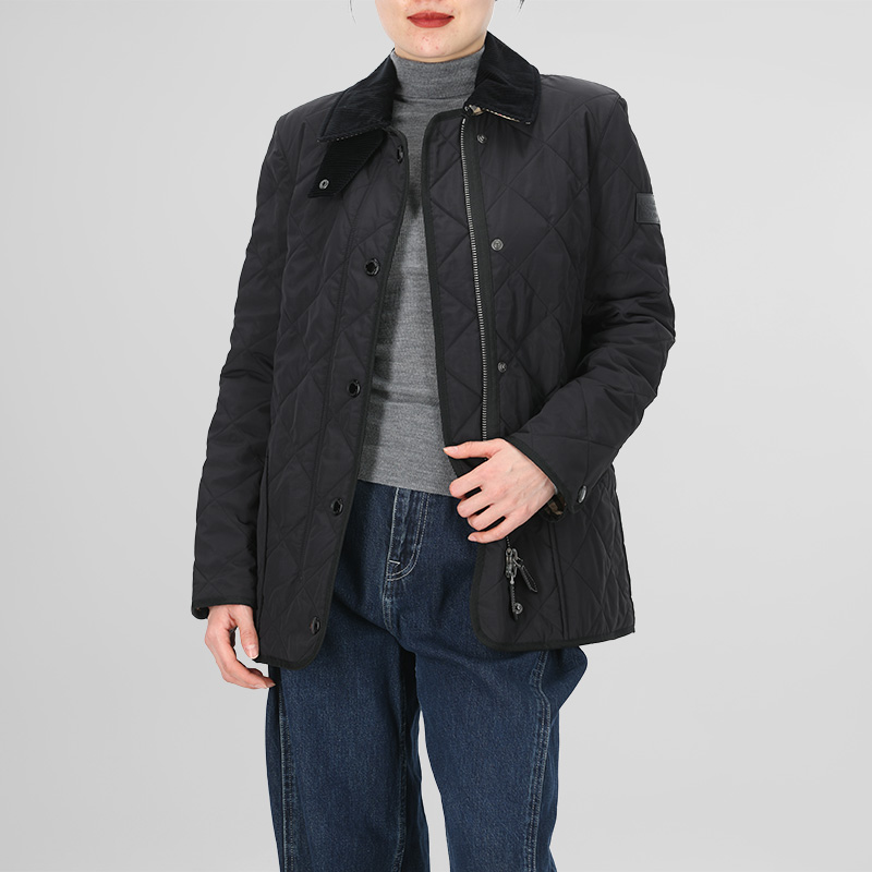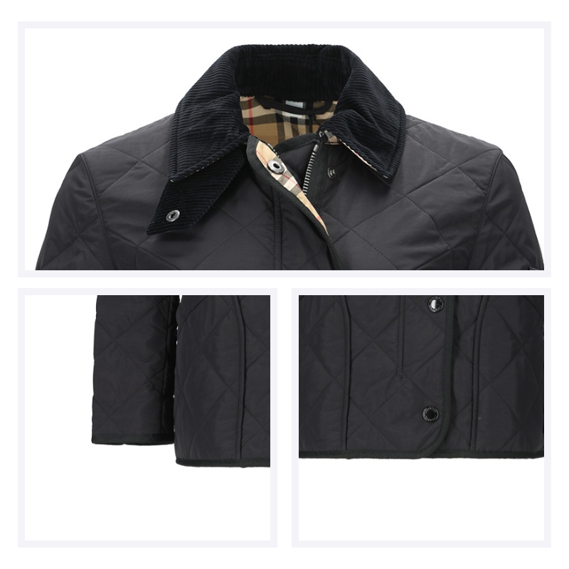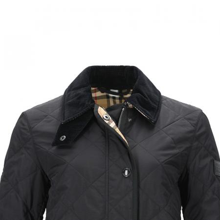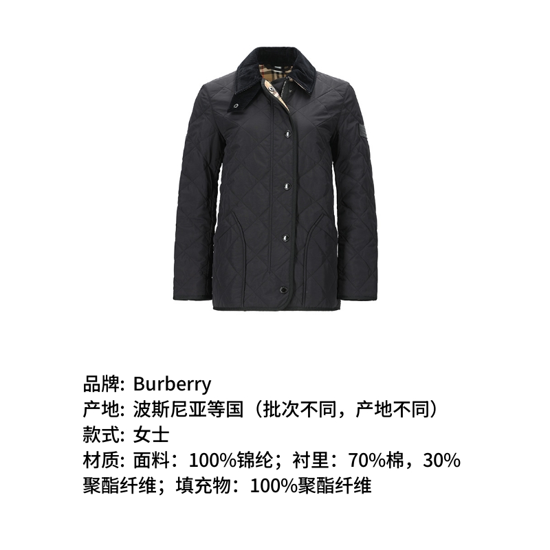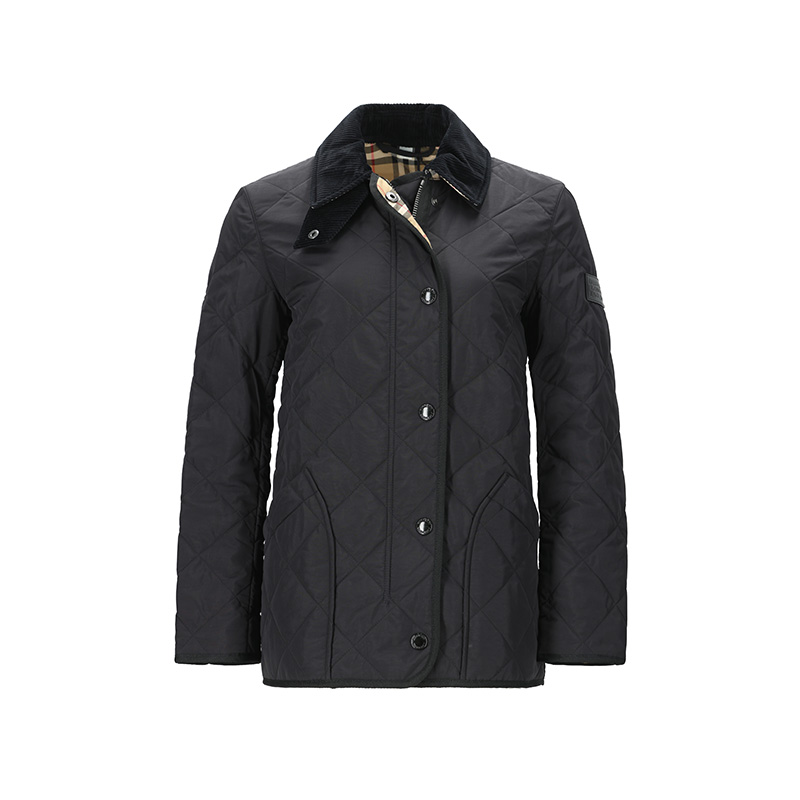 自营Burberry 博柏利 女款锦纶菱形绗缝薄款谷仓夹棉夹克棉服外套黑色 80217511